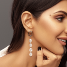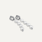 These glamorous pearl drop earrings offer a modern way to wear pearls and are linked by a thin hanging chain.