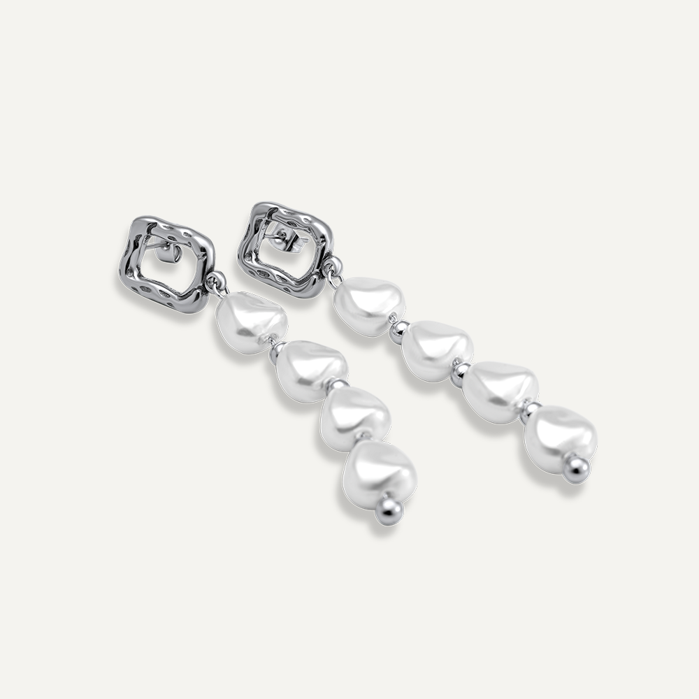 Made from Rhodium Plated Stainless Steel with lab created shell pearls.