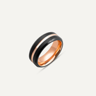 Add character and style to your look with this black Tungsten Dome Ring with a brushed finish and 18K Rose Gold detailing. A ring that will pair well with formal or casual attire.