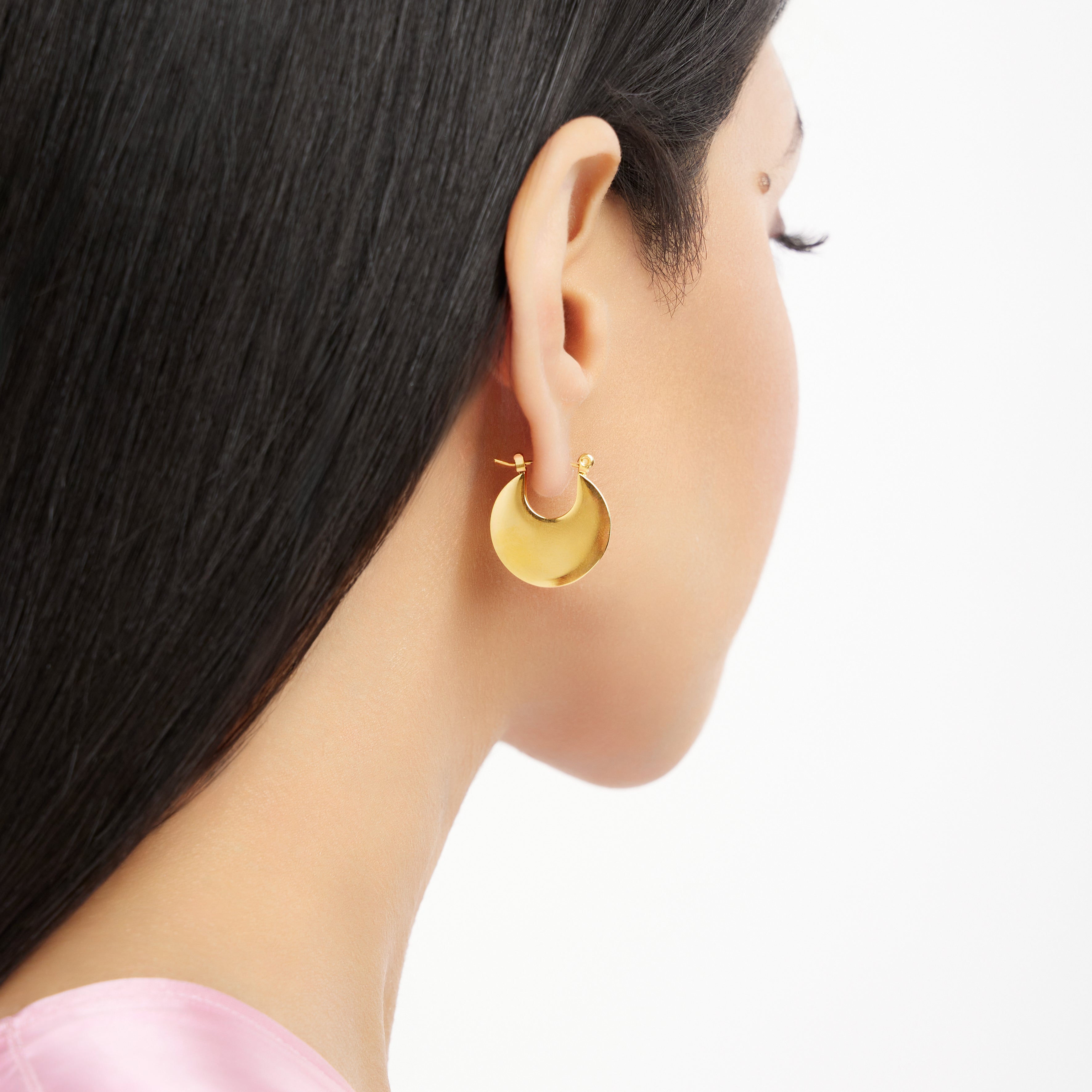 Introducing the C-Luxe Hoops – a modern take on the classic C-shaped hoop. Crafted with sleek lines and a minimalist design, these hoops are plated with 18k gold for a luxurious finish. The flat silhouette adds a contemporary edge, making them perfect for both everyday wear and special occasions. Lightweight and stylish, the C-Luxe Hoops are your go-to accessory for effortless elegance.