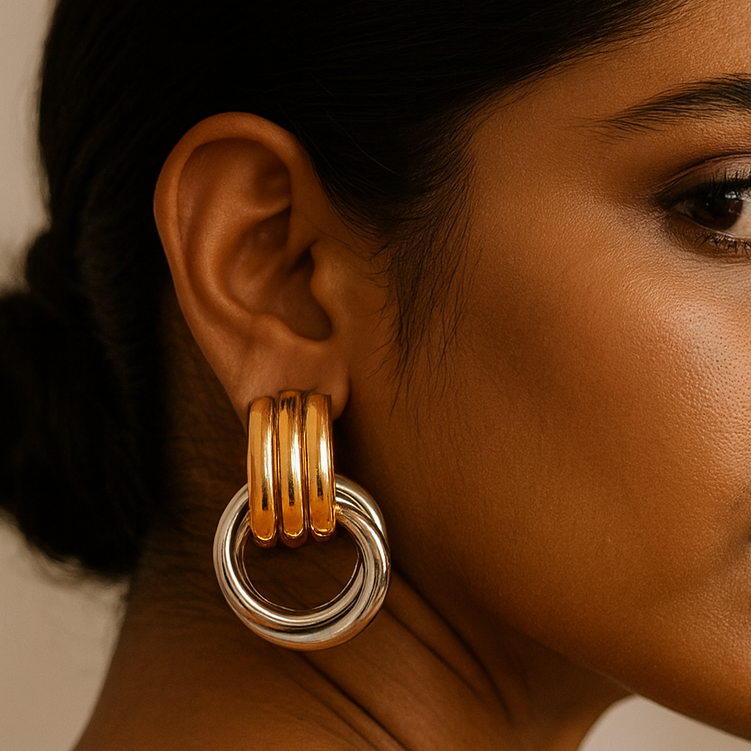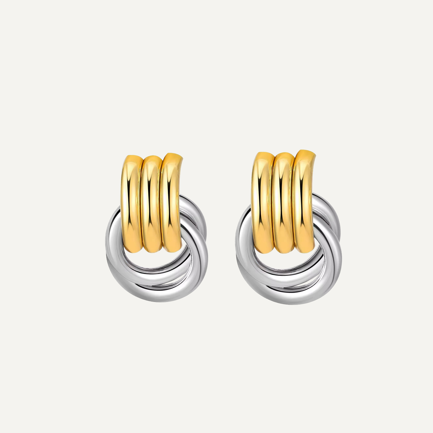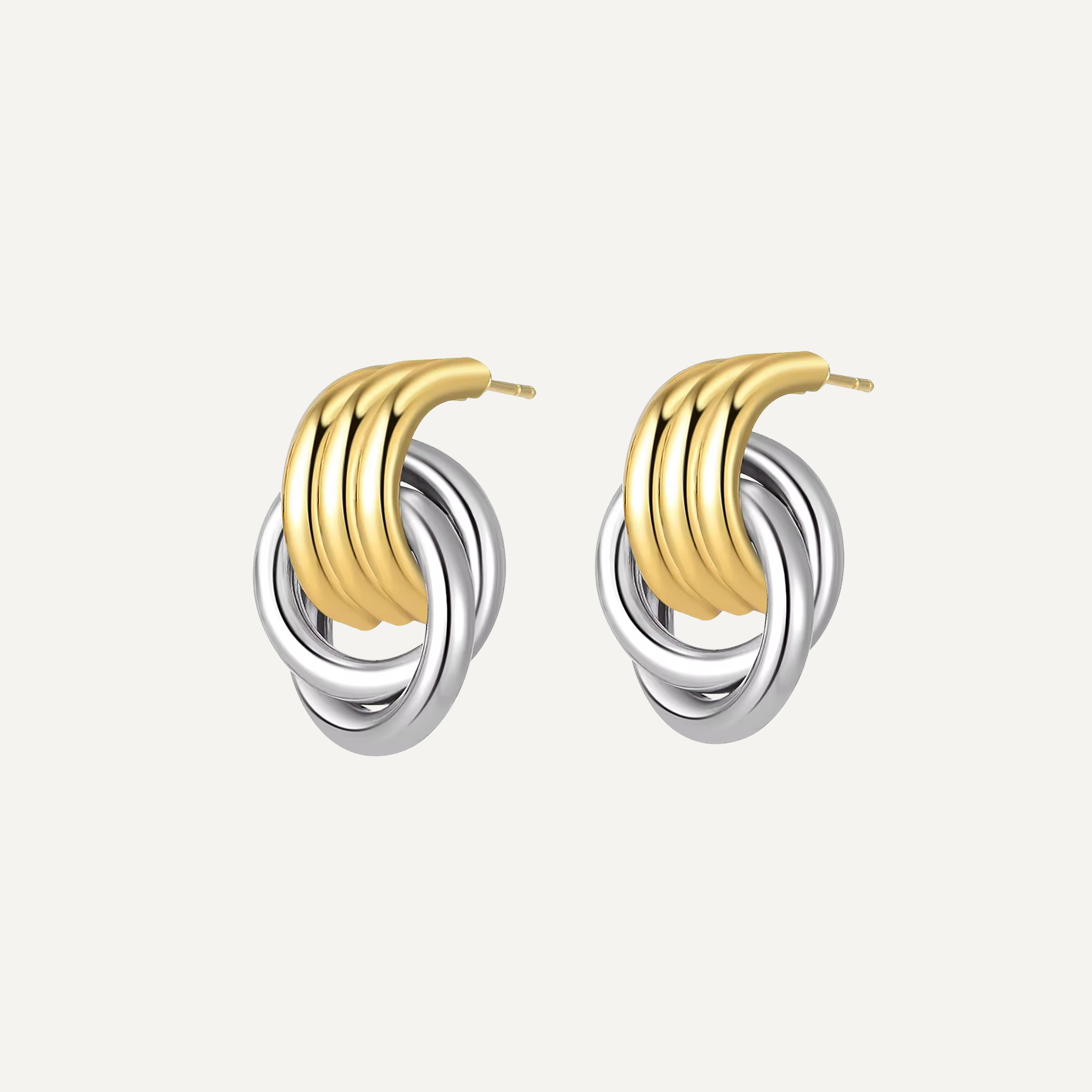 The celestial double knot earrings are the hottest accessory of the season, featuring a chic mix of gold and silver tones. Crafted with precision and plated in luxurious 18k gold, they exude Hollywood glamour and are perfect for adding a touch of sophistication to any look. Whether you're dressing up for a night out or elevating your everyday style, these earrings offer versatility without compromising on quality.