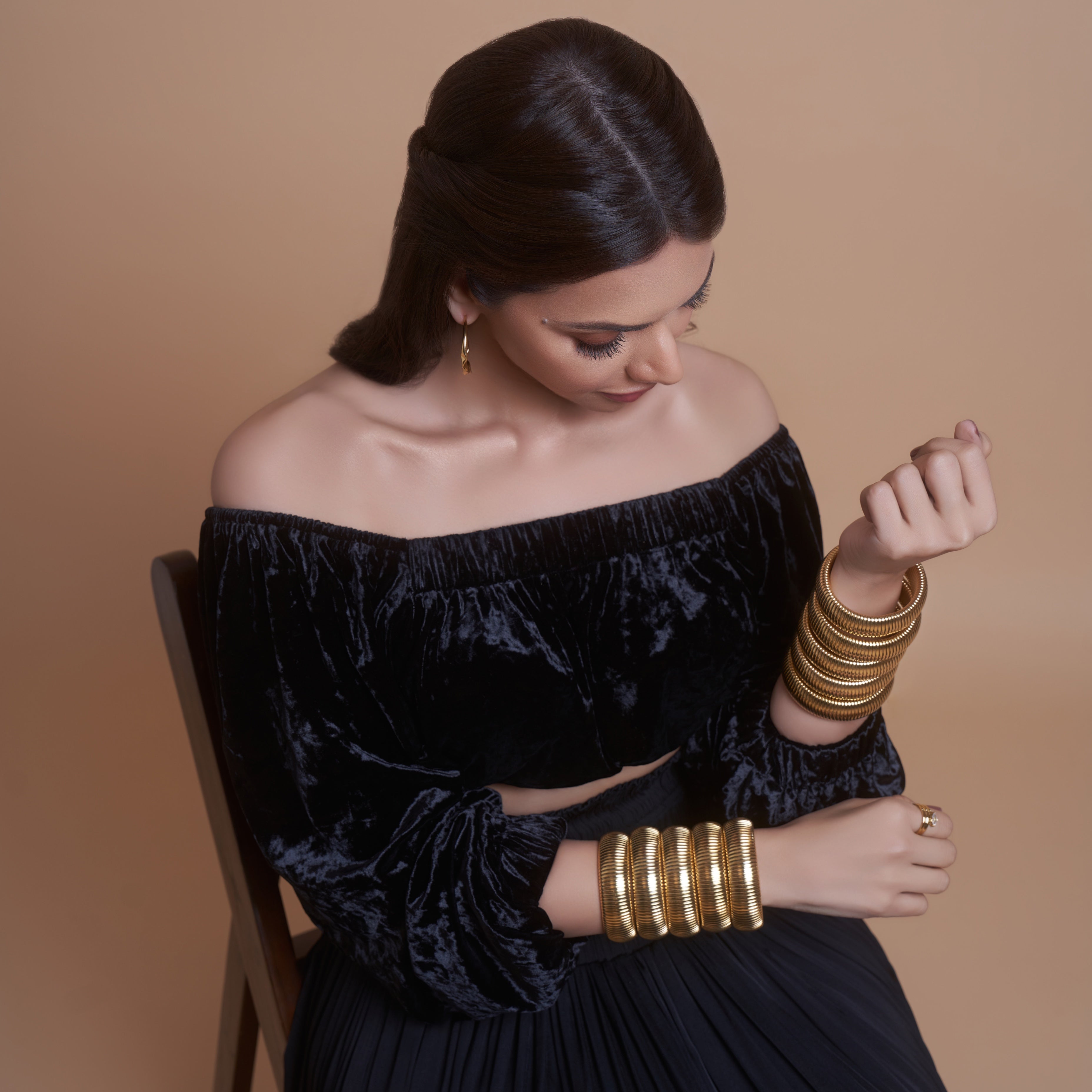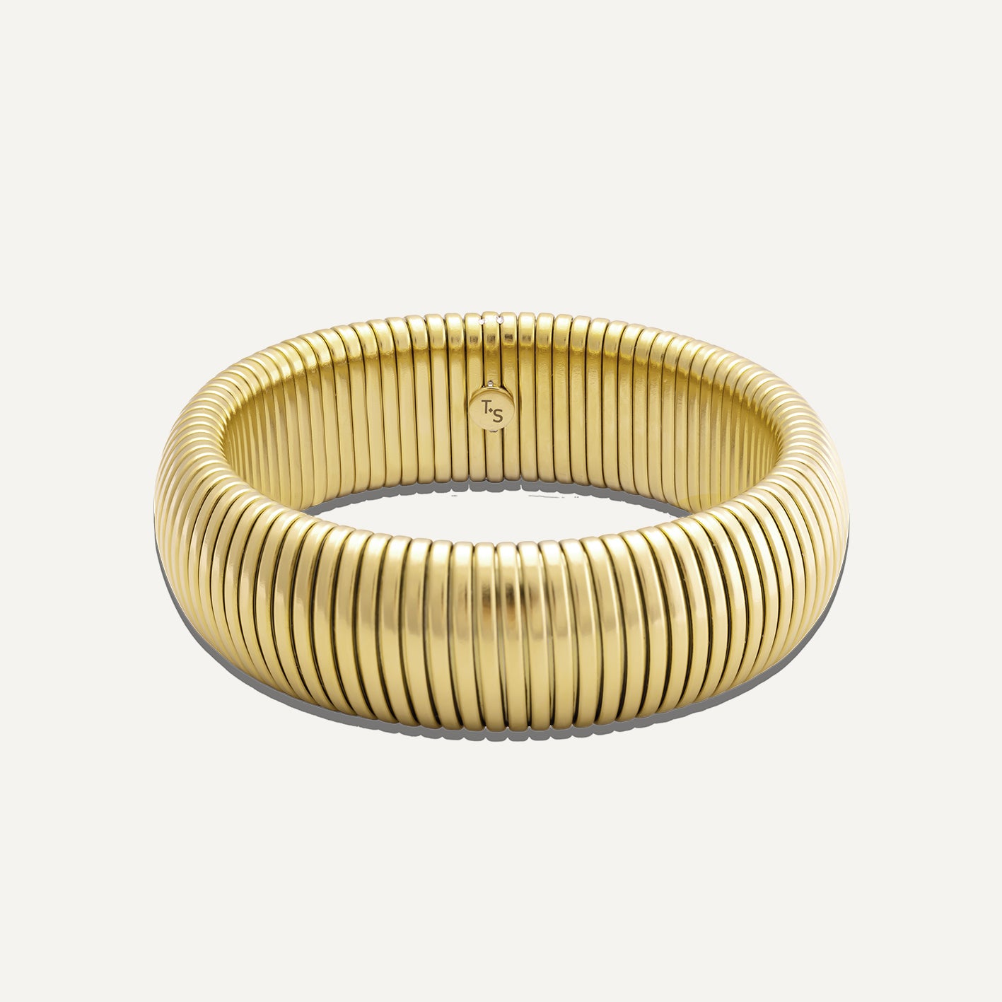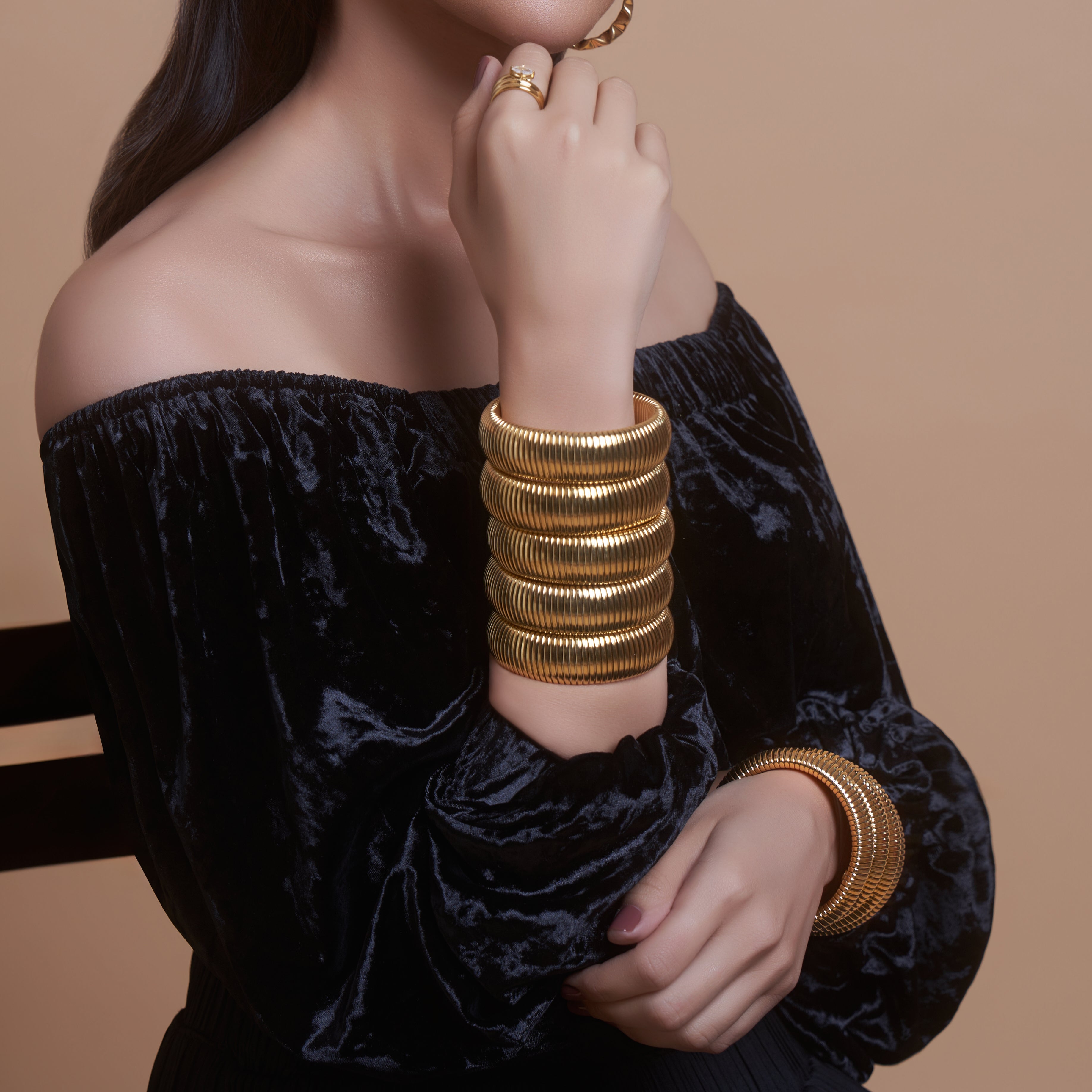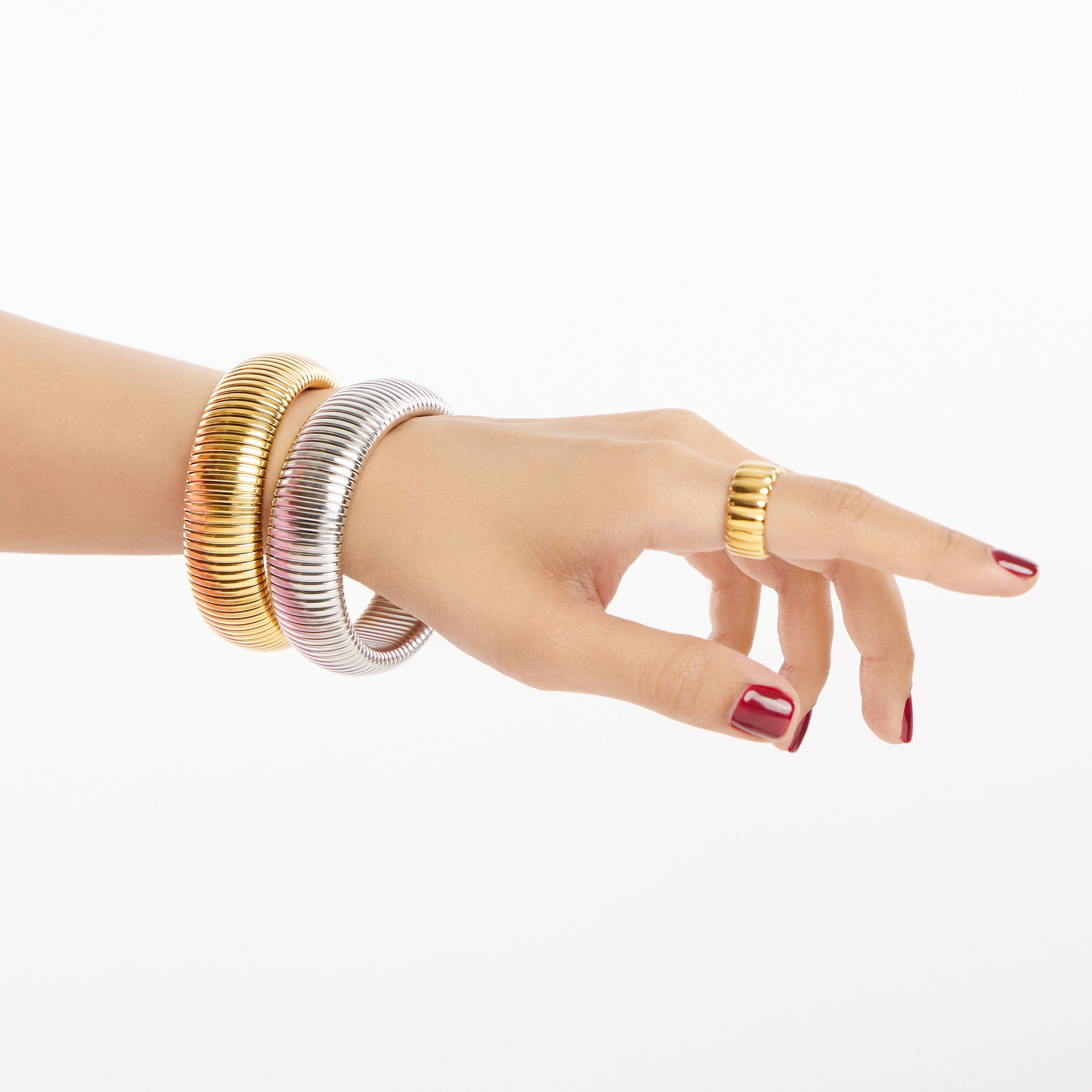 Bold and beautiful, this 18K Gold Plated stretchable chunky bracelet can be worn on its own or stacked together to make a statement.
