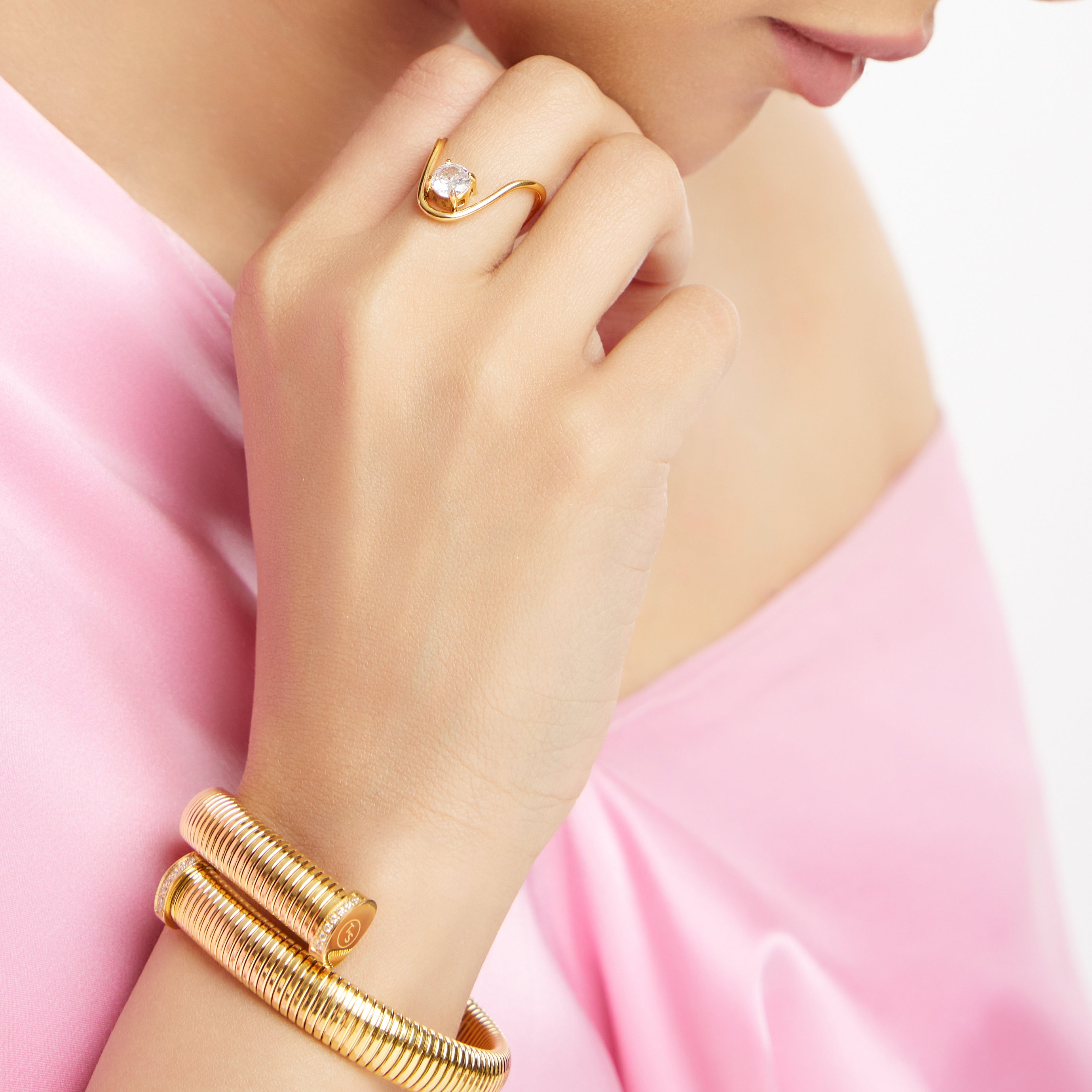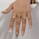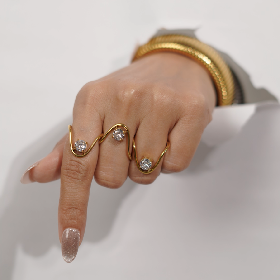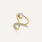 Combining a modern geometric design with the allure of dazzling CZ stones, this ring is impossible to ignore and even harder to forget. Wear it facing front or back, this one one looks good both solo or stacked.