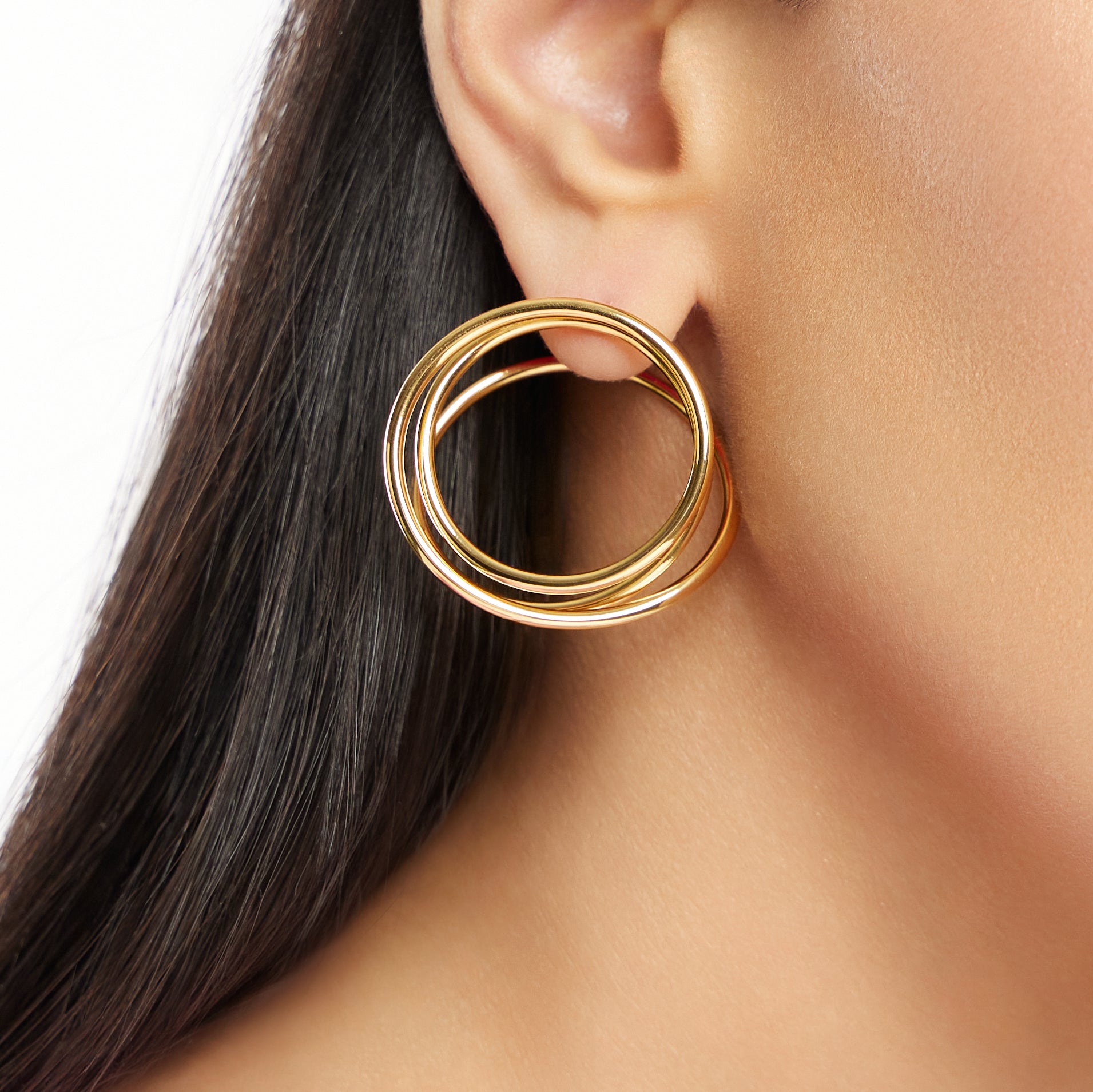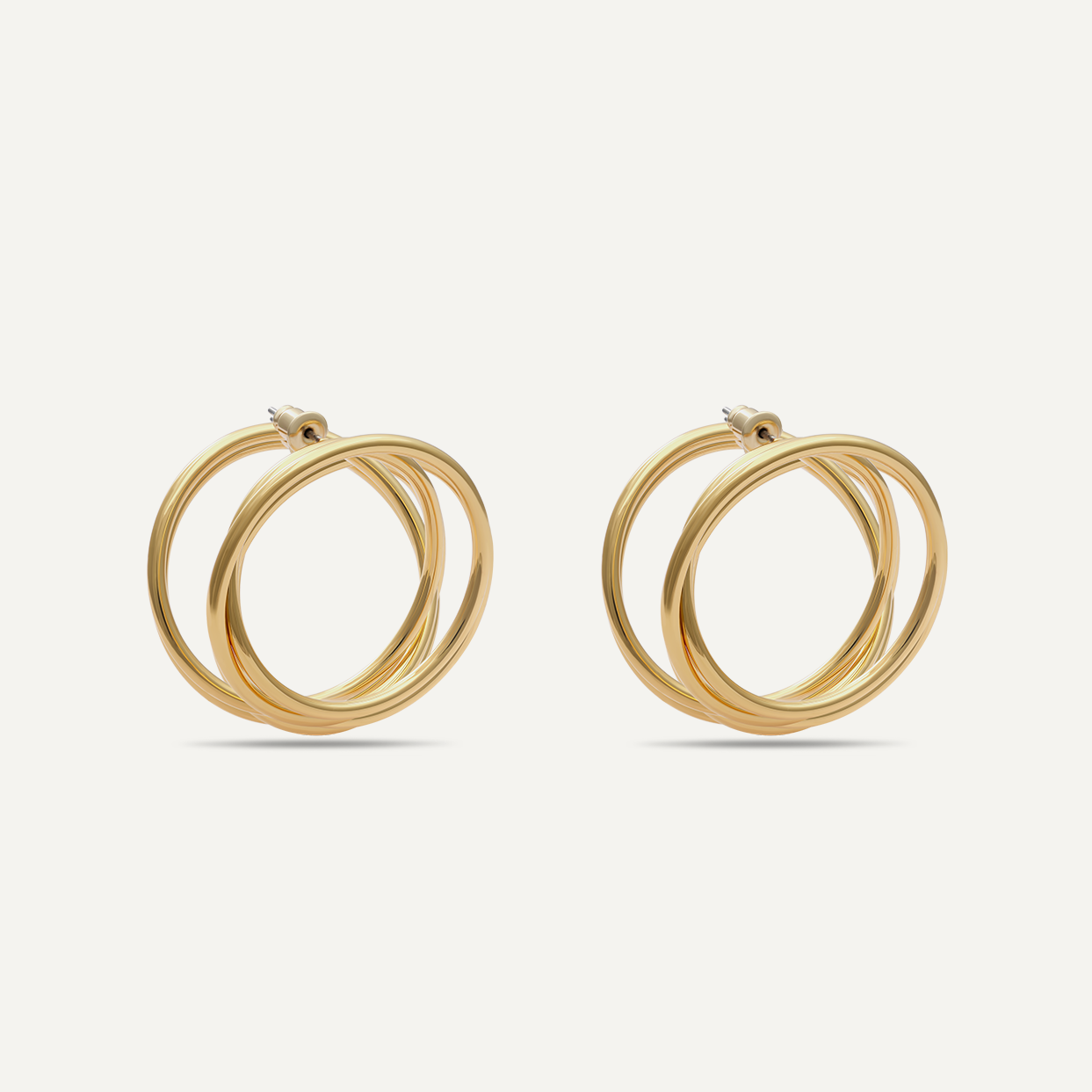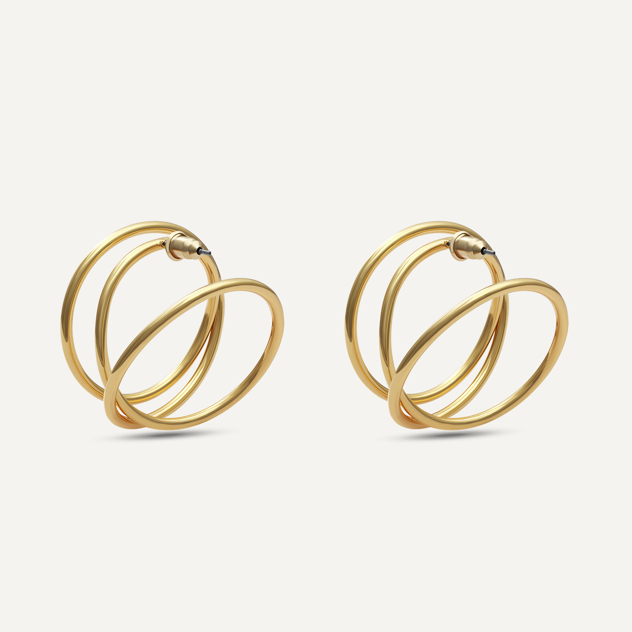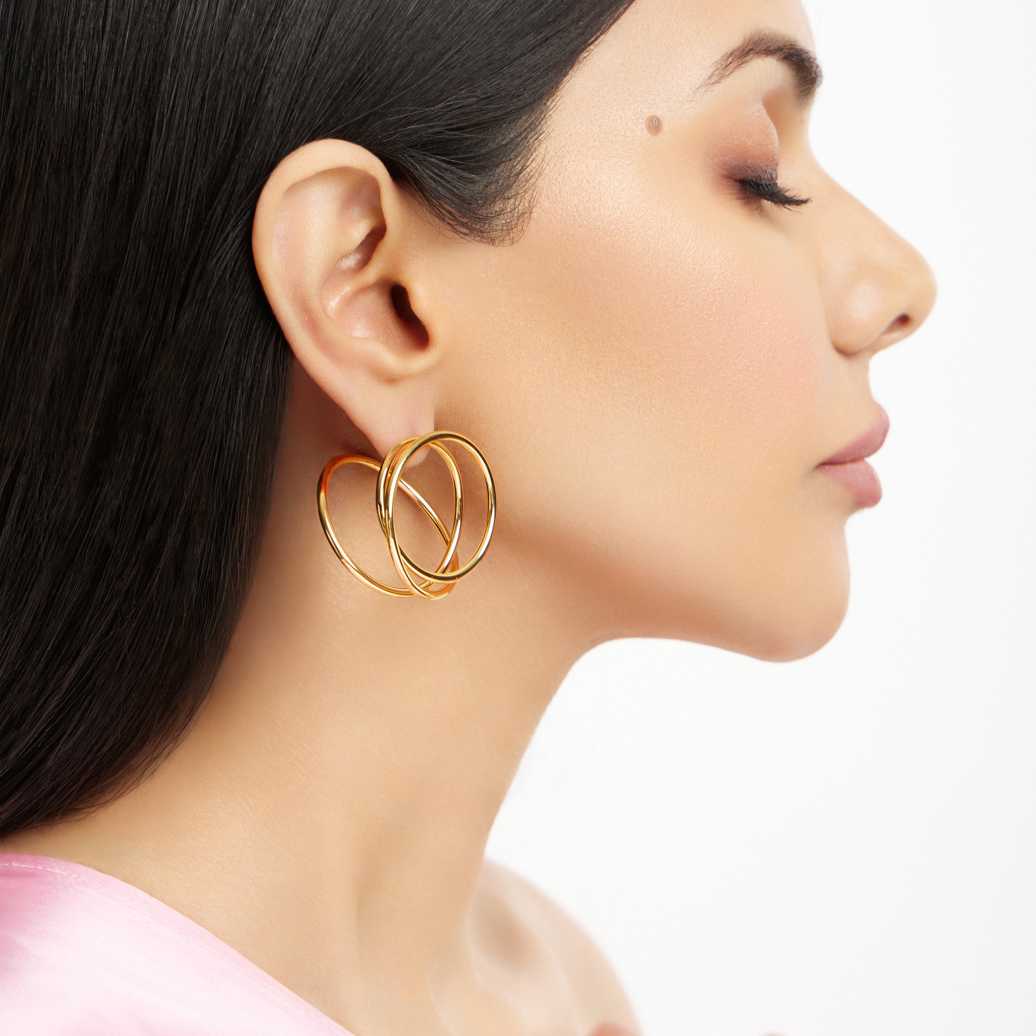 Artful and tasteful, these earrings are anything but ordinary. Made with 18K Gold Plated Brass, these hoop earrings are lightweight and will be your next favourite statement piece.