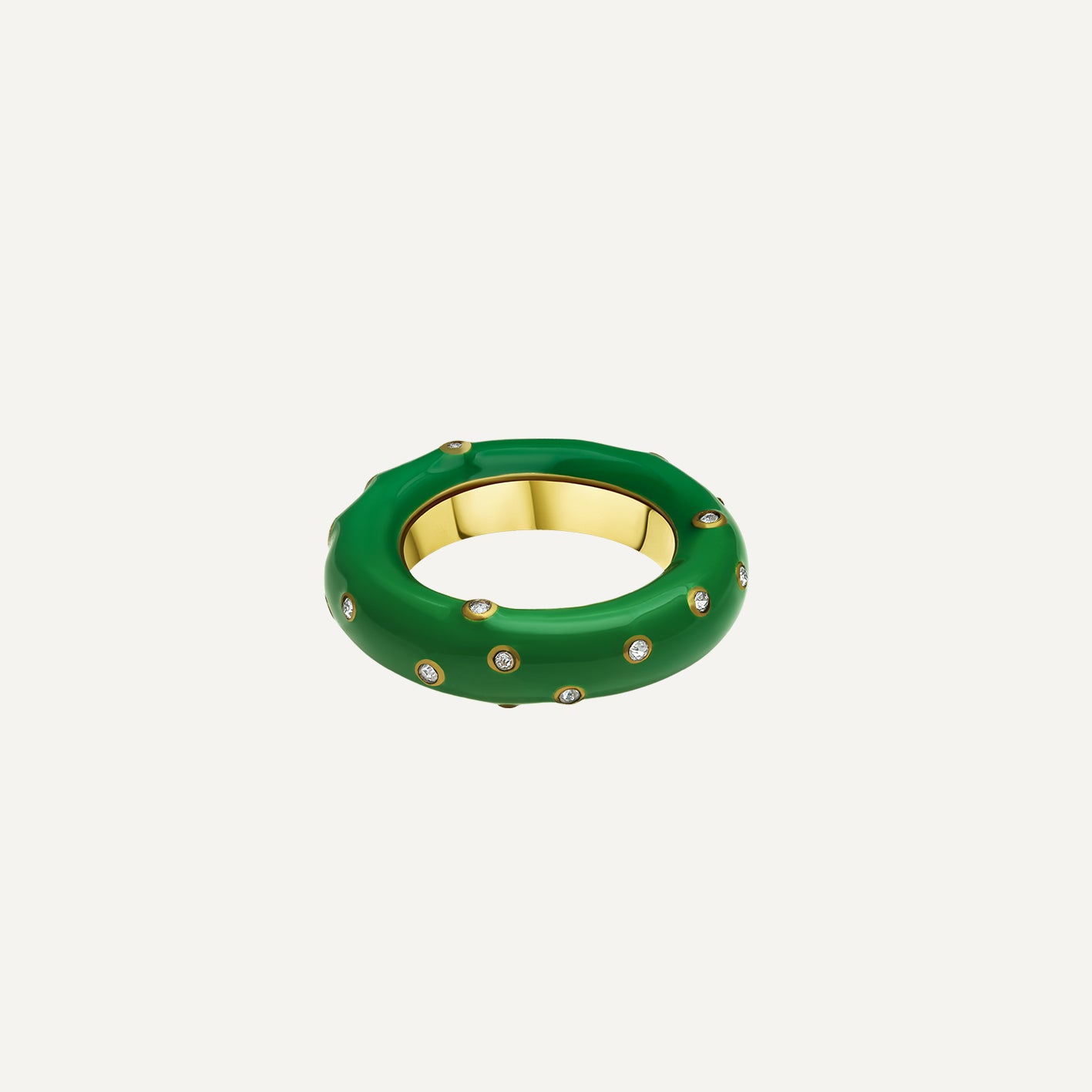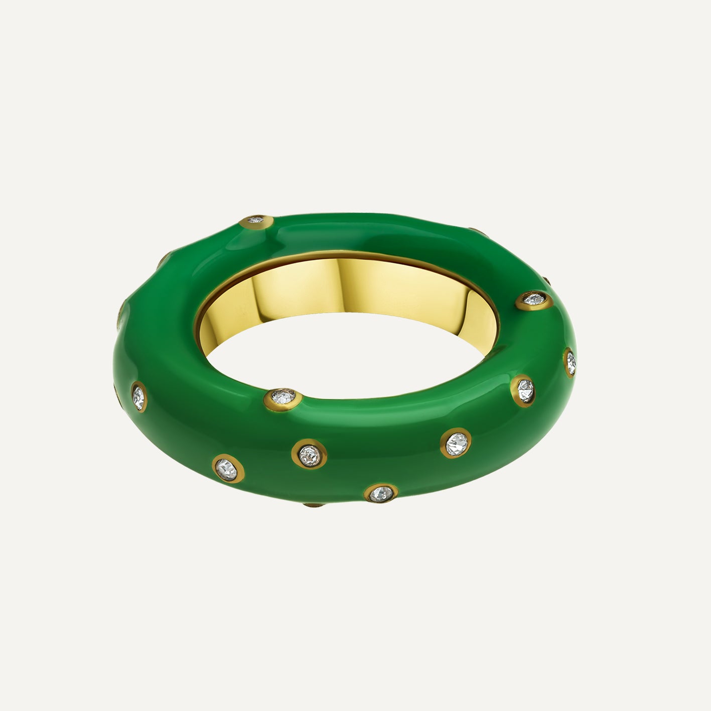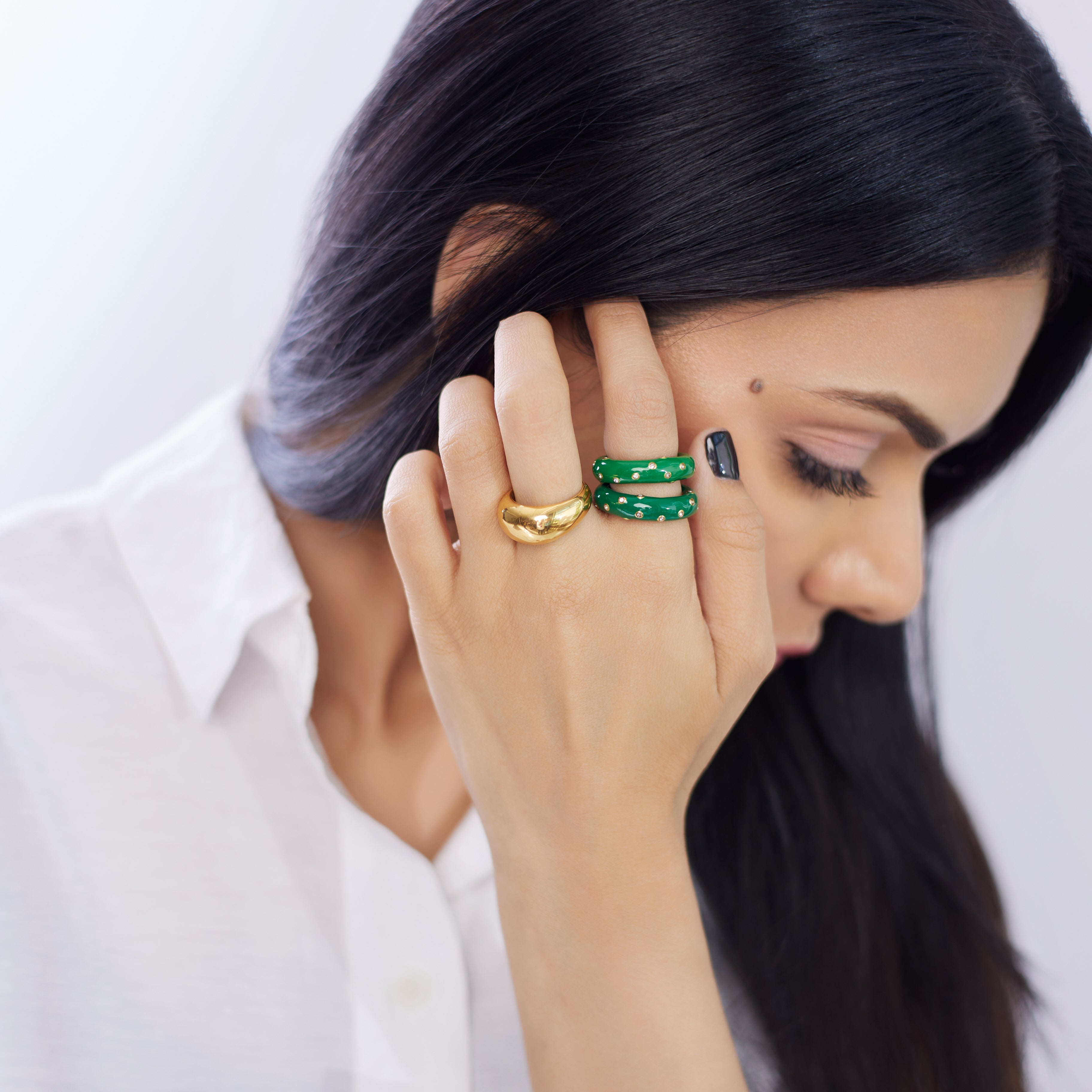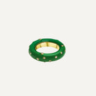 Step into the realm of luxury with this stunning band, crafted in 18k gold plated stainless steel. With its captivating emerald enamel and sparkling 4A CZ set diamond stones, it embodies elegance fit for royalty.