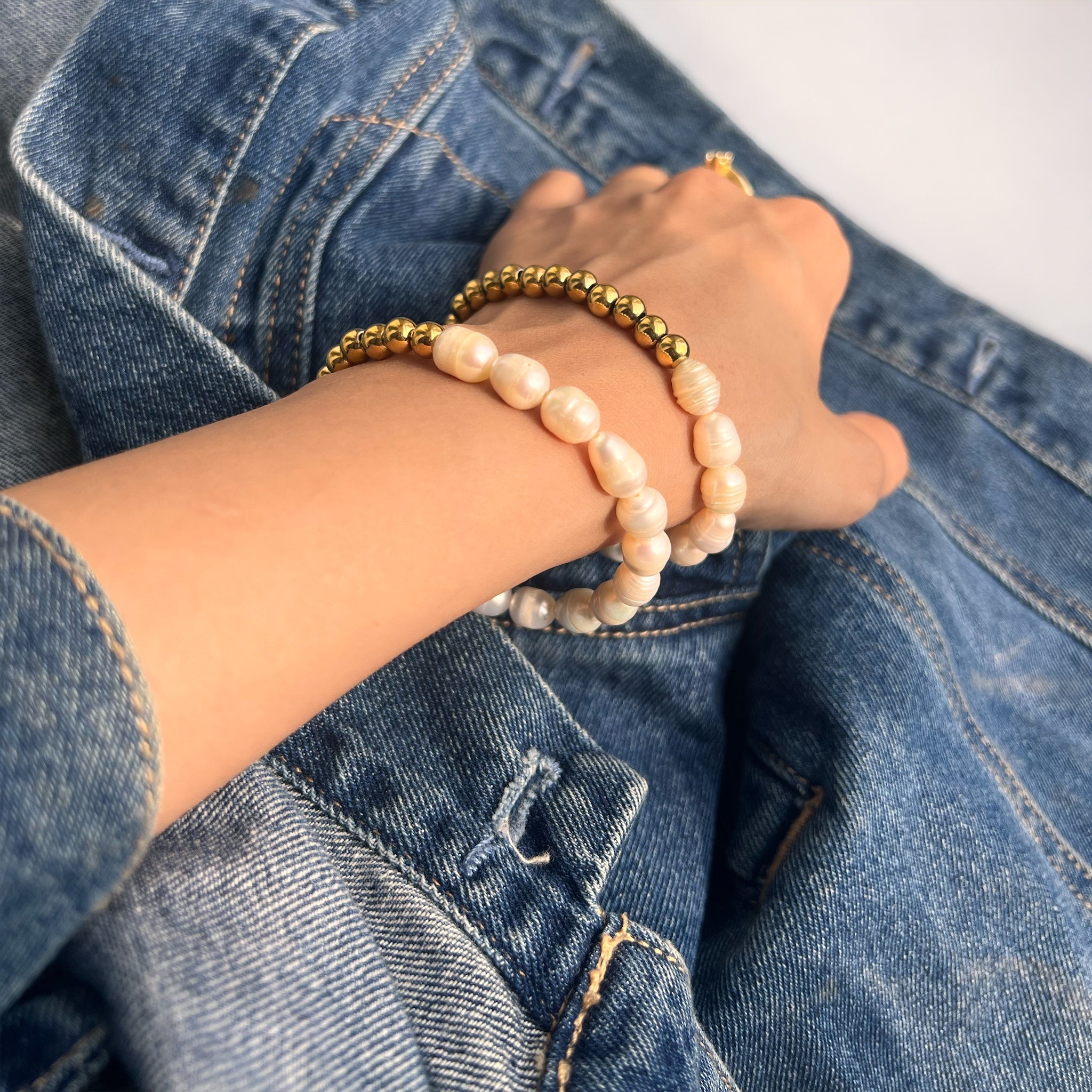 These stunning handmade freshwater pearl bracelets combined with 18K gold plated beads will dress up pretty much any outfit. Wear it solo or stacked, this one will never go unnoticed.