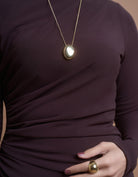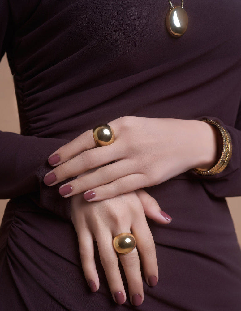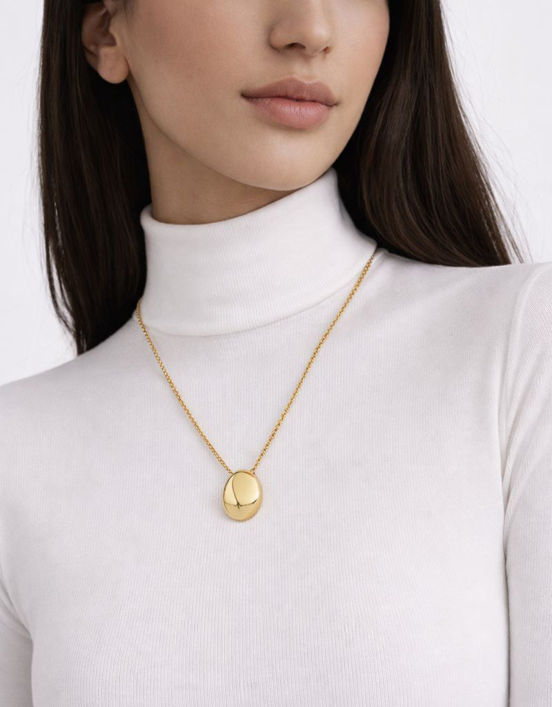 The Gold Bold Dome Necklace exudes modern elegance with its bold dome shape, plated in 18k Gold PVD. Crafted from 316L stainless steel, the necklace captures the light with every movement. The durable gold plating ensures a long-lasting, radiant shine, making this piece a timeless addition to your collection.