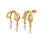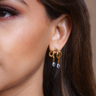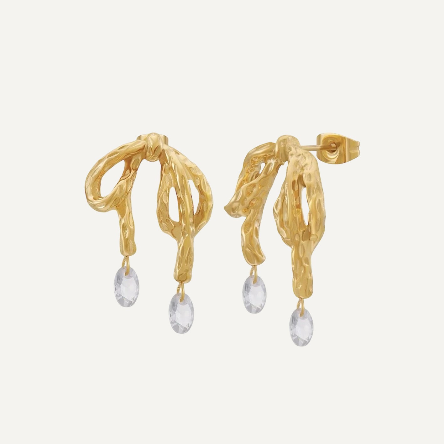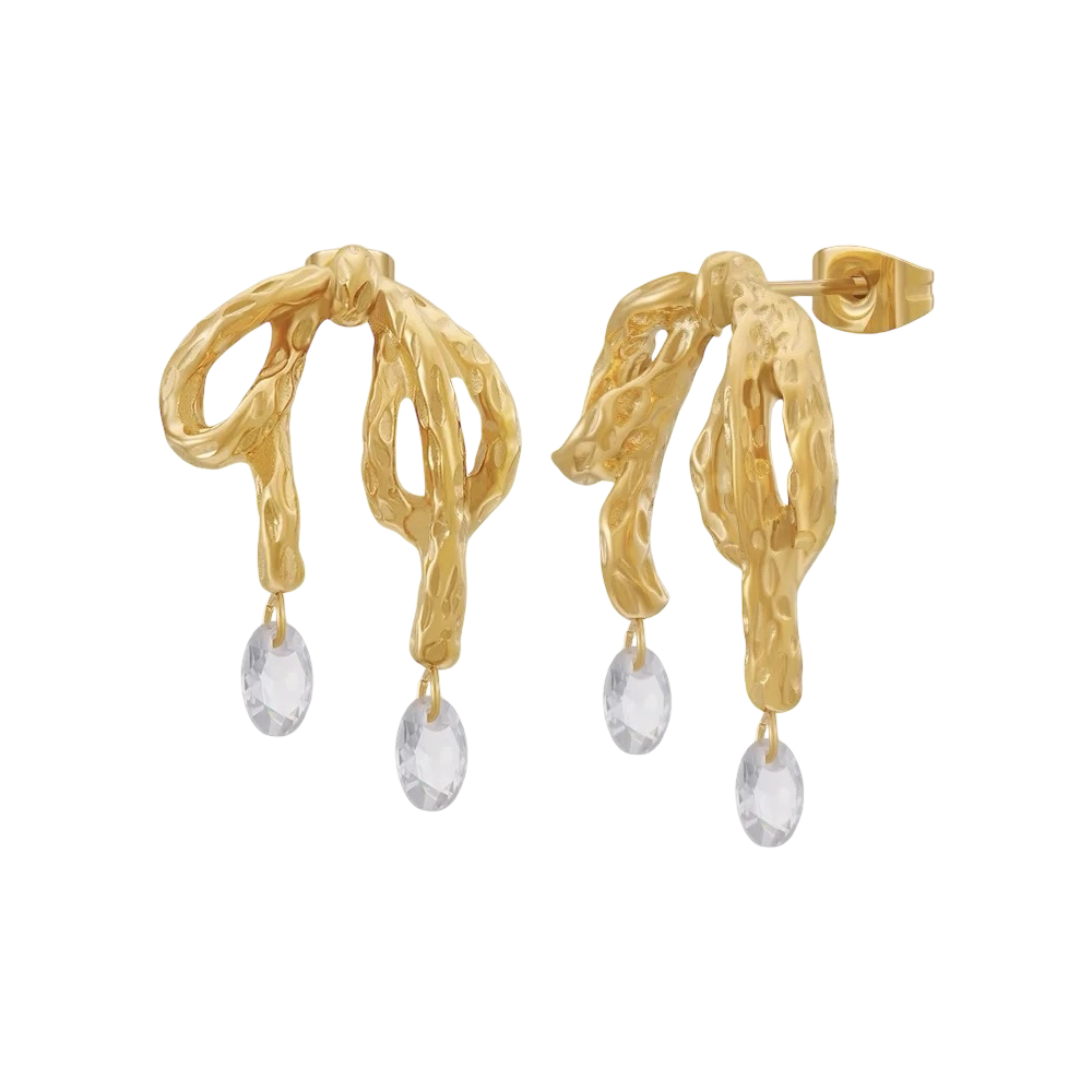 Add a touch of elegance to your jewelry collection with our Gold Crystal Knot Earrings, where playful design meets luxurious sophistication. Crafted in stunning 18k gold plating, these earrings feature a charming knot shape that symbolizes unity and grace.