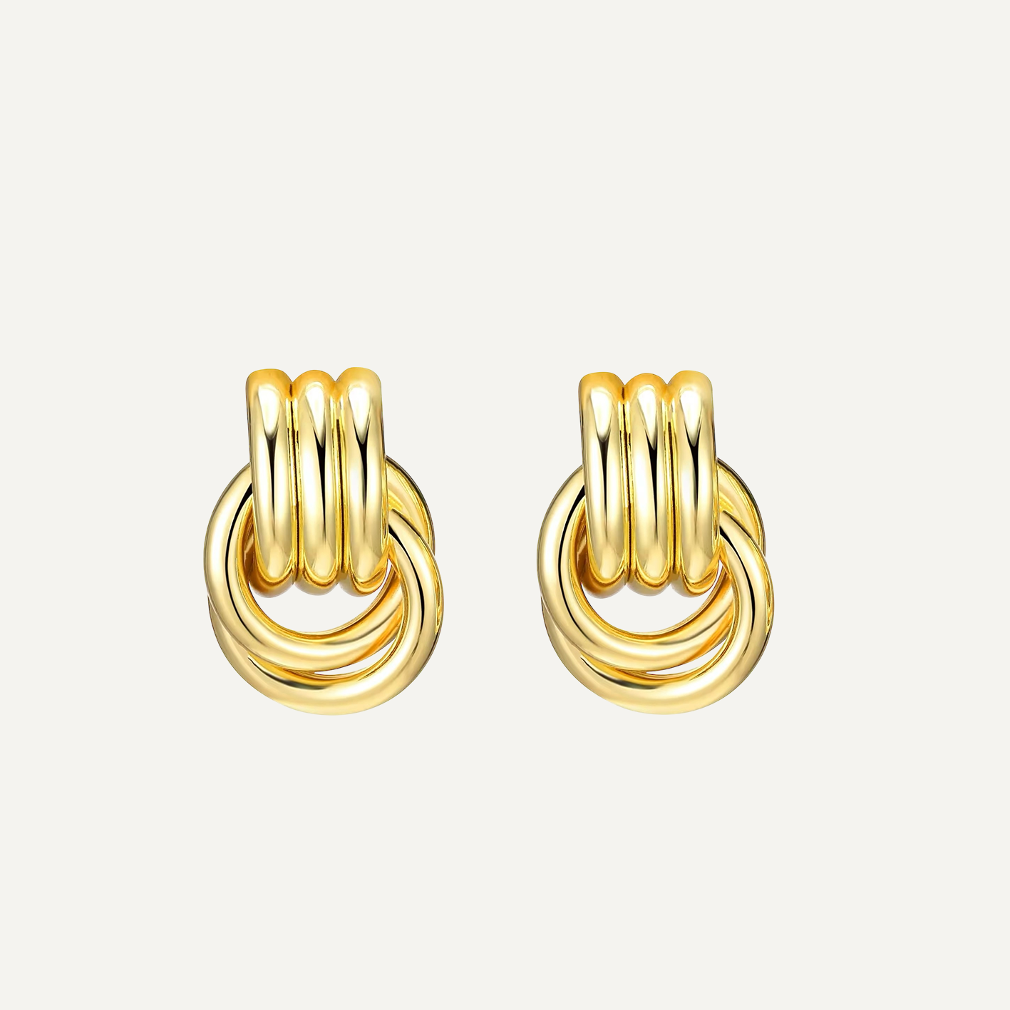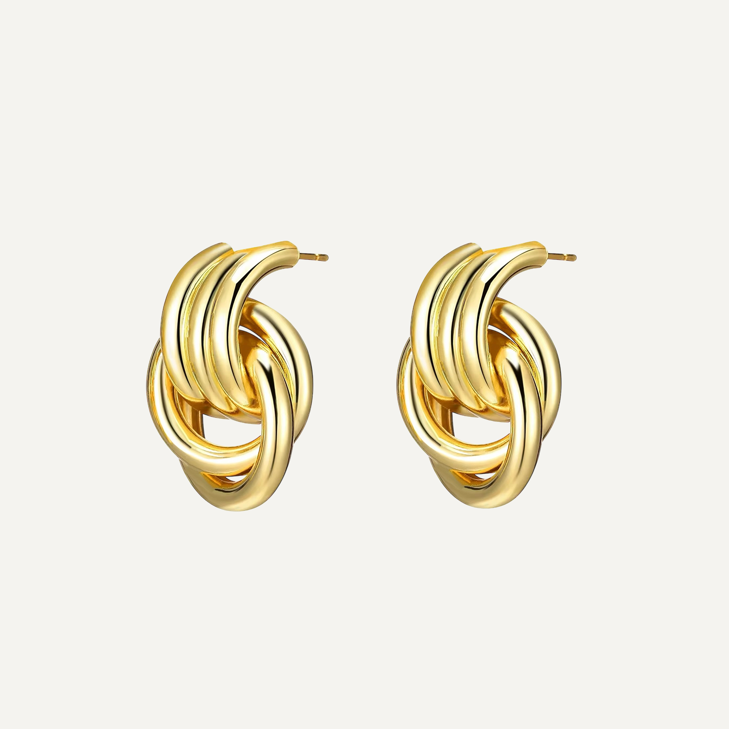 These gold double knot earrings are the hottest accessory of the season, combining elegance with bold, contemporary style. Crafted with precision and plated in luxurious 18k gold, they exude Hollywood glamour and are perfect for adding a touch of sophistication to any look. Whether you're dressing up for a night out or elevating your everyday style, these earrings offer versatility without compromising on quality.