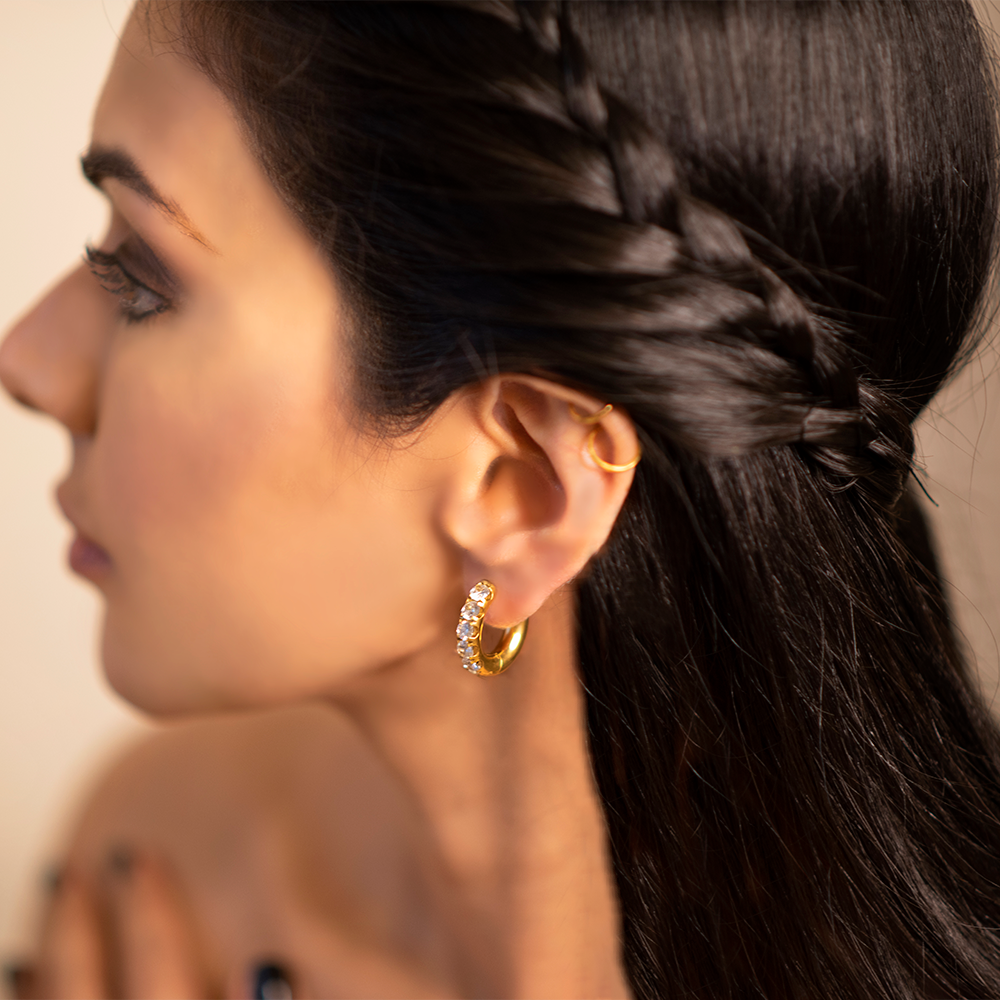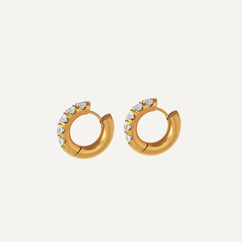 A pair of pavé huggies are a must-have for any jewellery lover. The perfect size for building that layered look, these huggies are crafted with Cubic Zirconia stones and 18K Gold Plated Stainless Steel.