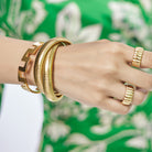 Stylish with 18K gold plating, this bangle complements everyday looks with its soft touch of timeless elegance.