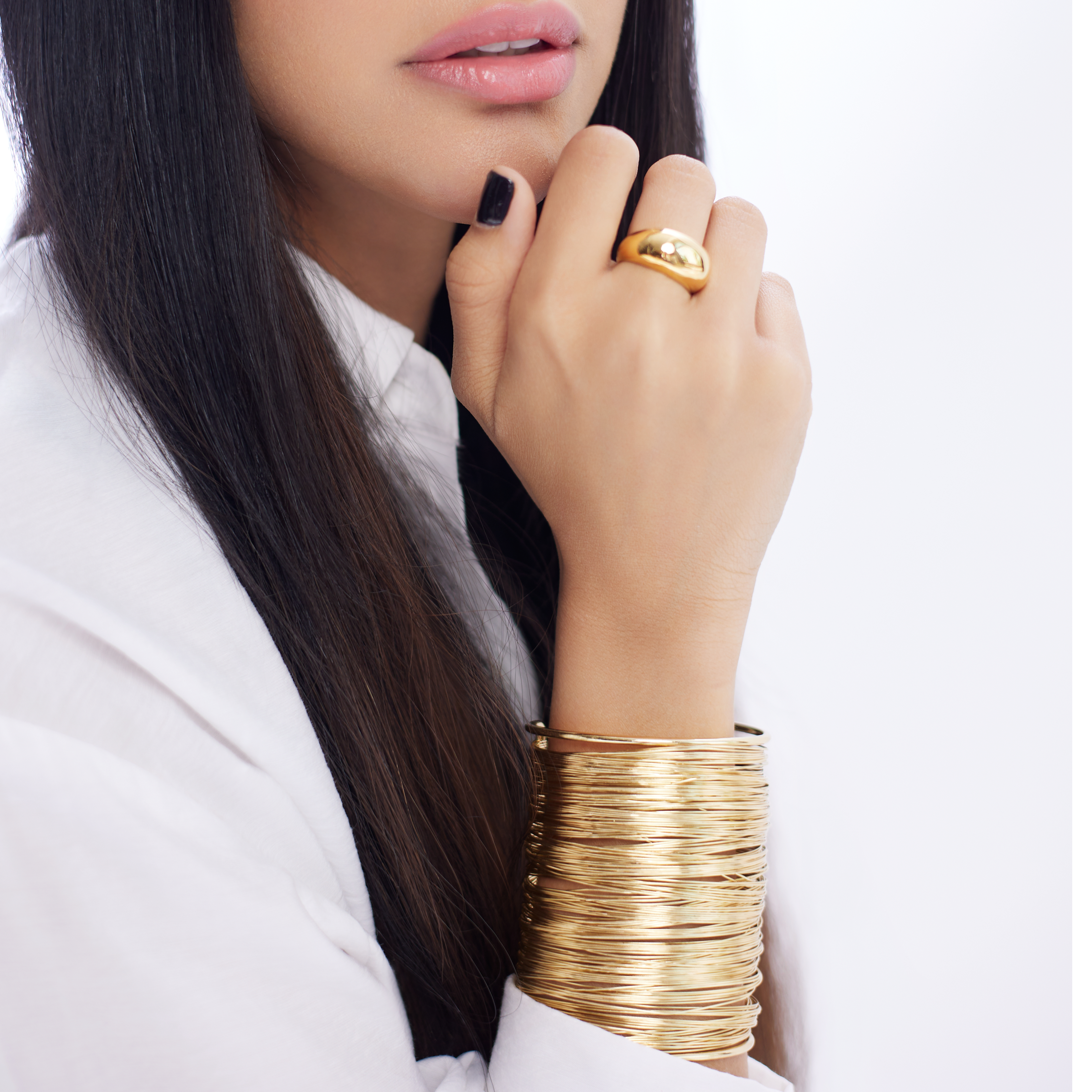 This open wire cuff is simple yet exquisite with an 18K Gold Polish finish. An effortless piece that will go perfectly with casual and formal looks.