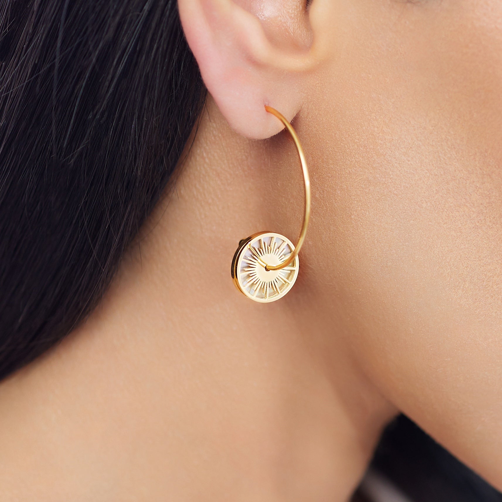 These 18K Gold Sun Drop Earrings are simple and elegant piece that can be worn day to night. Wear these earrings to add a little dimension and texture to your ears this season.