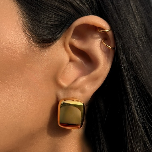 Introducing our 'Luminous Gold Square Studs', where minimalist design meets luxurious elegance. Crafted with precision and adorned with a radiant touch of gold, these earrings redefine sophistication.