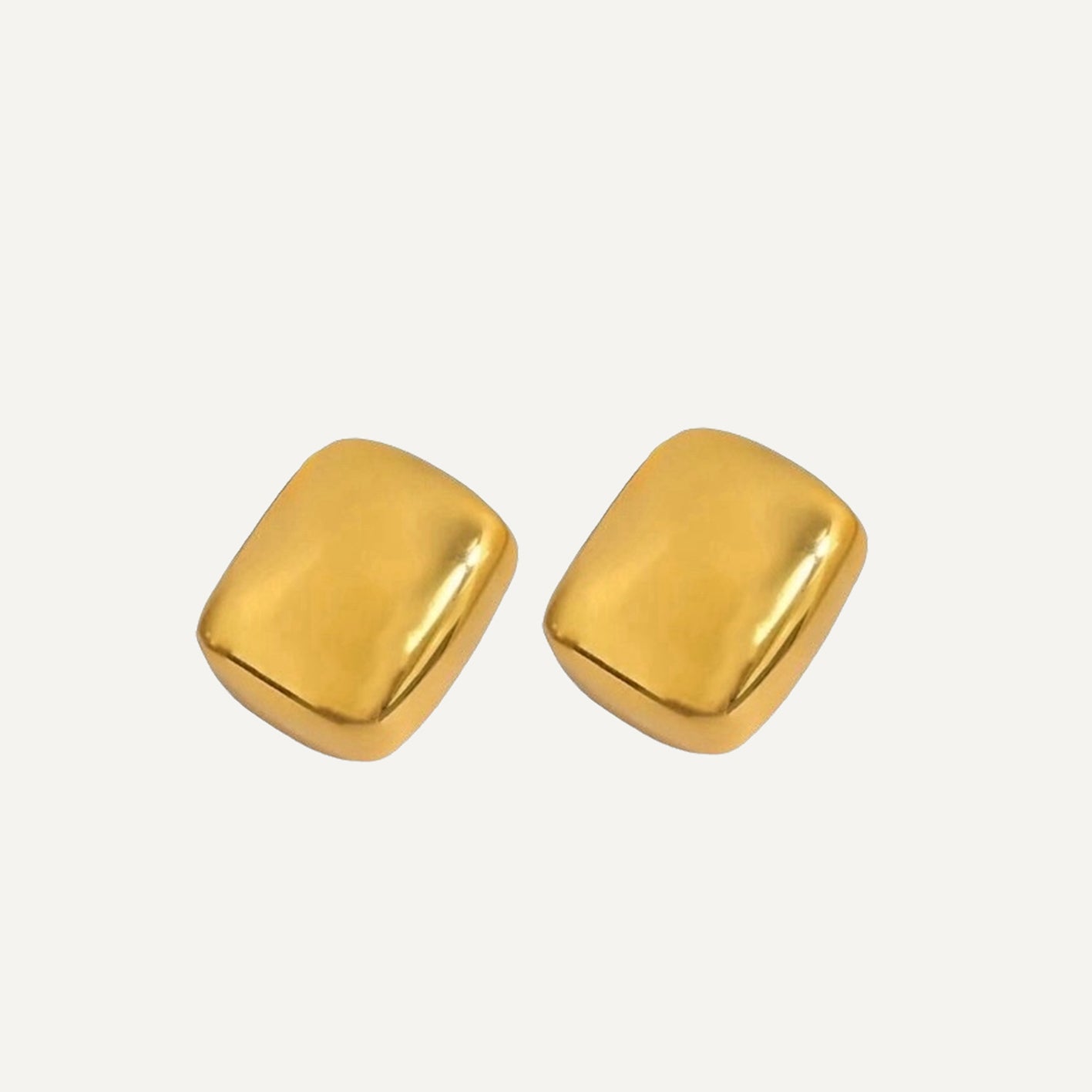 Each stud features a sleek square shape delicately curved to embrace the earlobe.