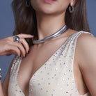 The Luxe Silver Slide Choker brings a touch of timeless elegance, with a gleaming rhodium finish that enhances its radiant shine. Designed for versatility, this choker can be worn with the gap positioned at the front or the back, allowing for a personalized, modern look. A bold statement piece that effortlessly combines luxury and innovation.