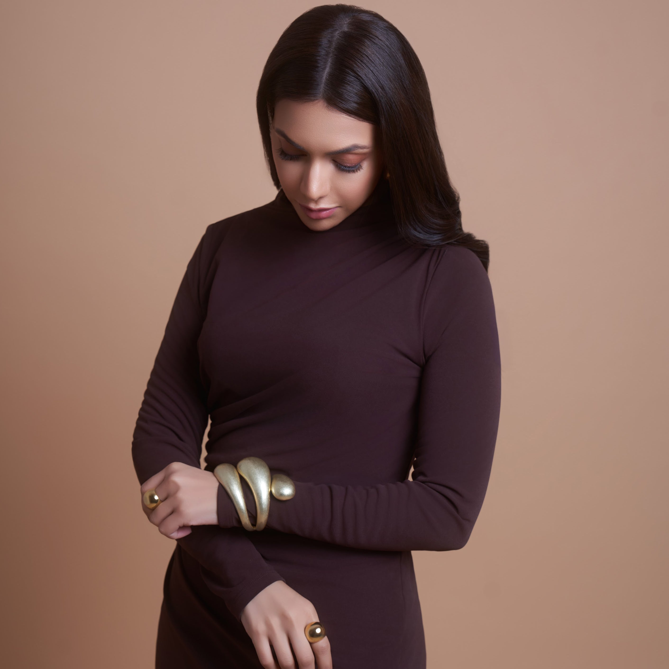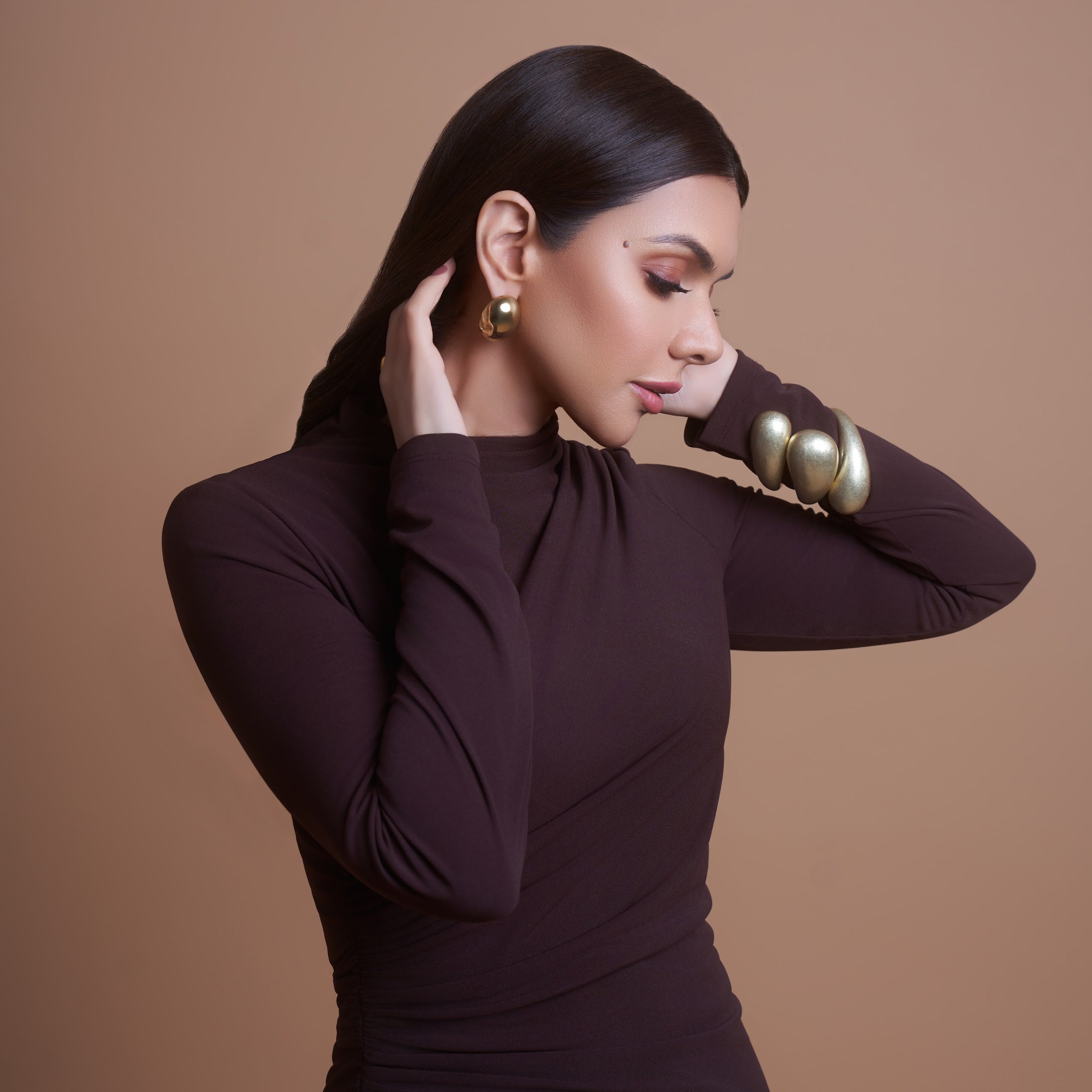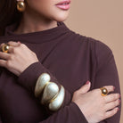 Make a bold statement with the Molten Luxe Bracelet, a sculptural cuff designed to be worn on the wrist or forearm. Drenched in radiant 14k gold plating, its organic, fluid form mimics the allure of molten metal, creating a look that’s both powerful and elegant. Part of the Euphoria Collection, this piece exudes pure luxury - perfect for those who dare to shine.