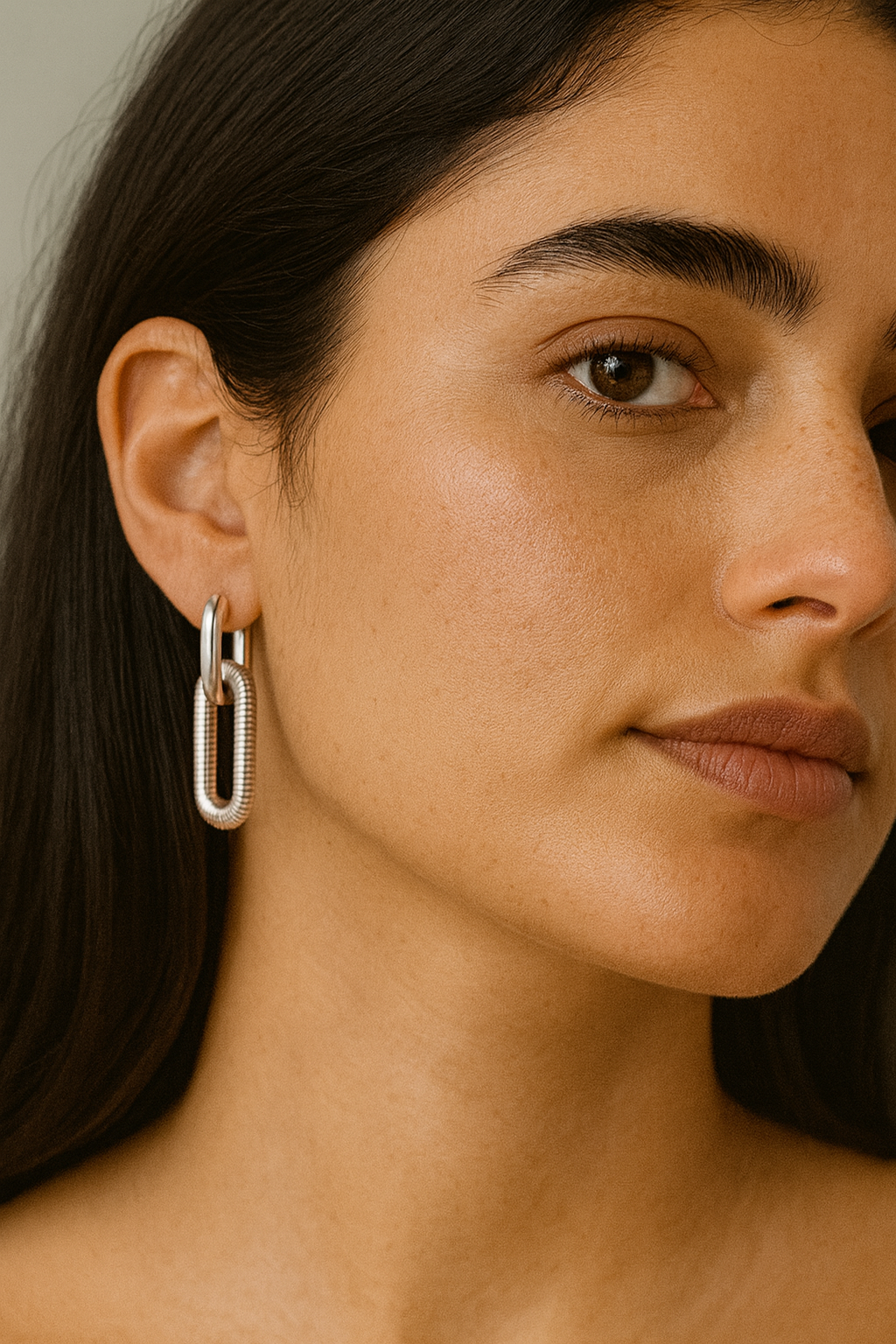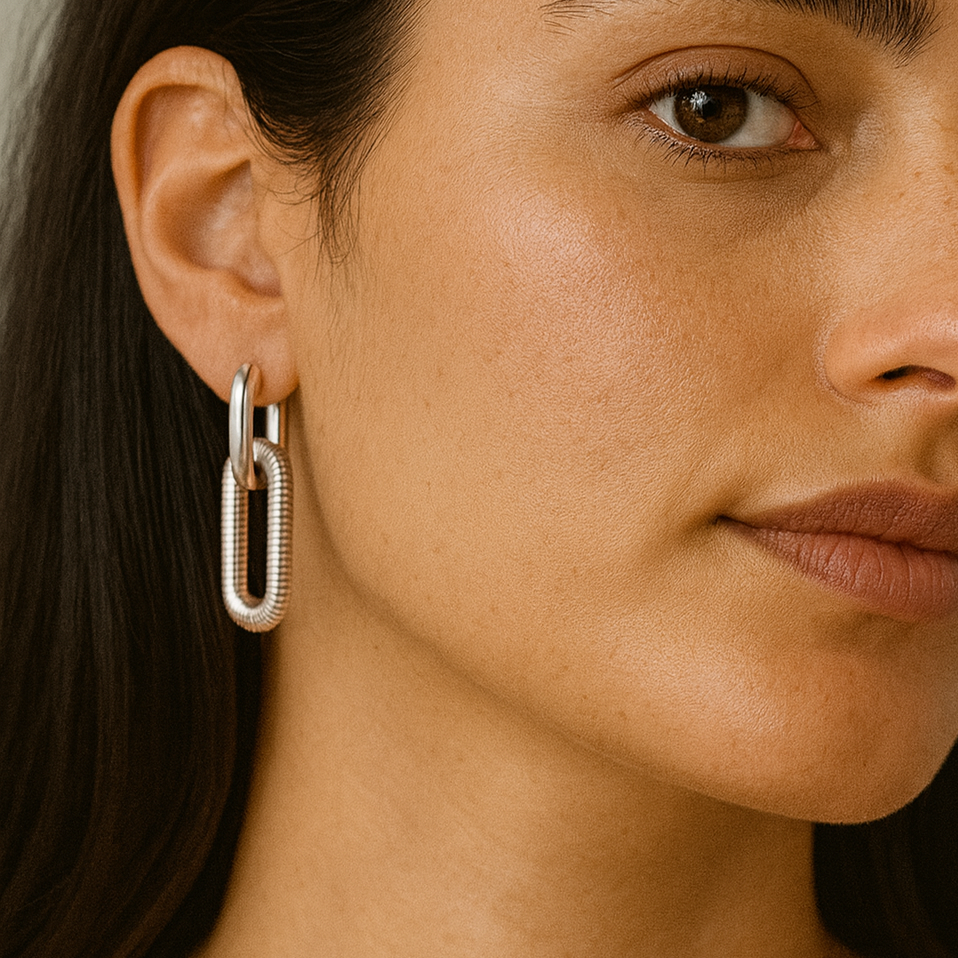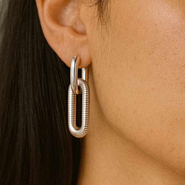 Shine with the Moonlight Link Hoops, a sleek double-link design that brings a cool, radiant touch to any look. Elegant, versatile, and effortlessly refined, they add the perfect hint of glow from day to night.