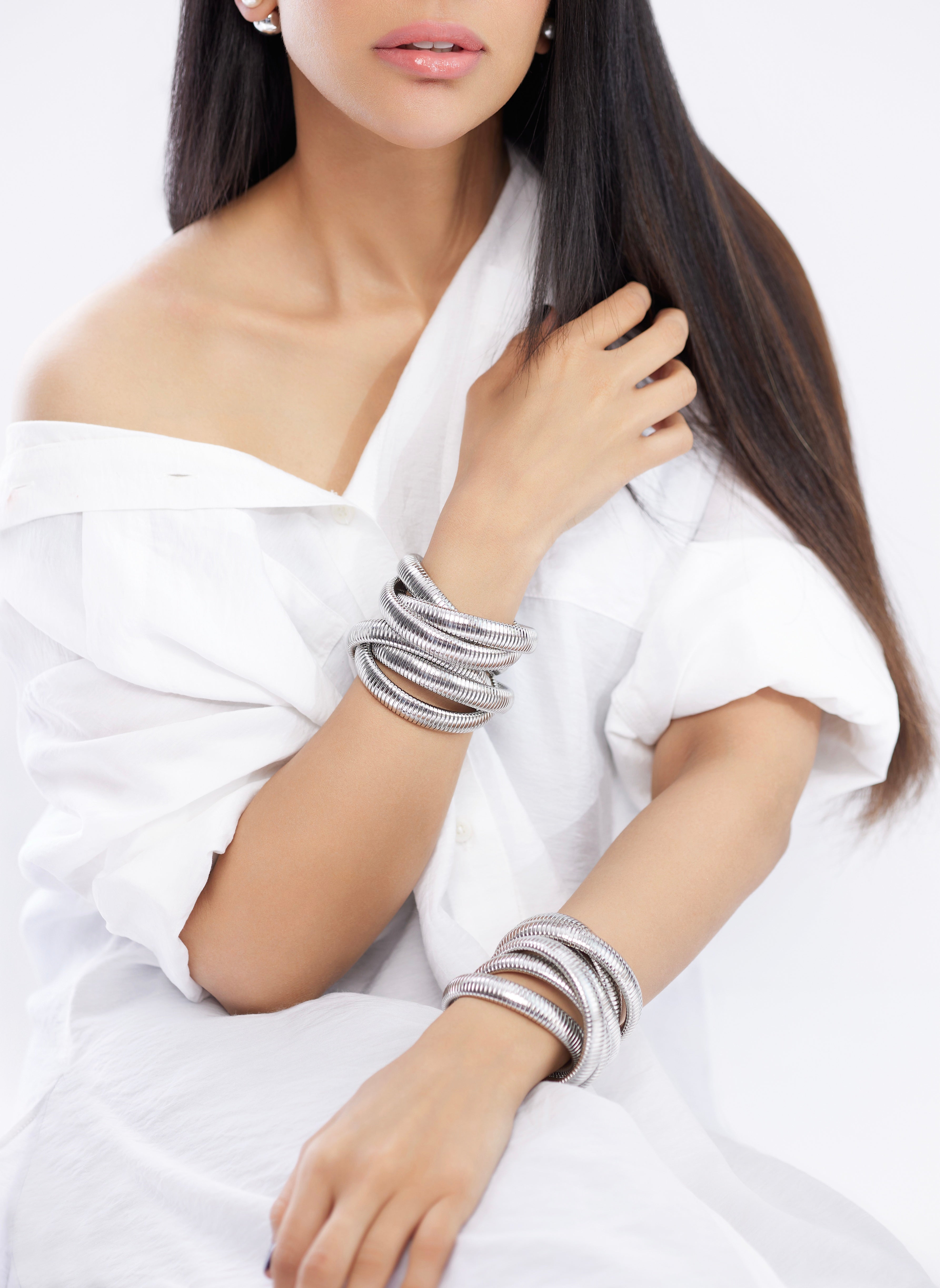 Bold and beautiful, this silver colour Triple Band-Bracelet can be worn on its own or stacked together to make a statement.