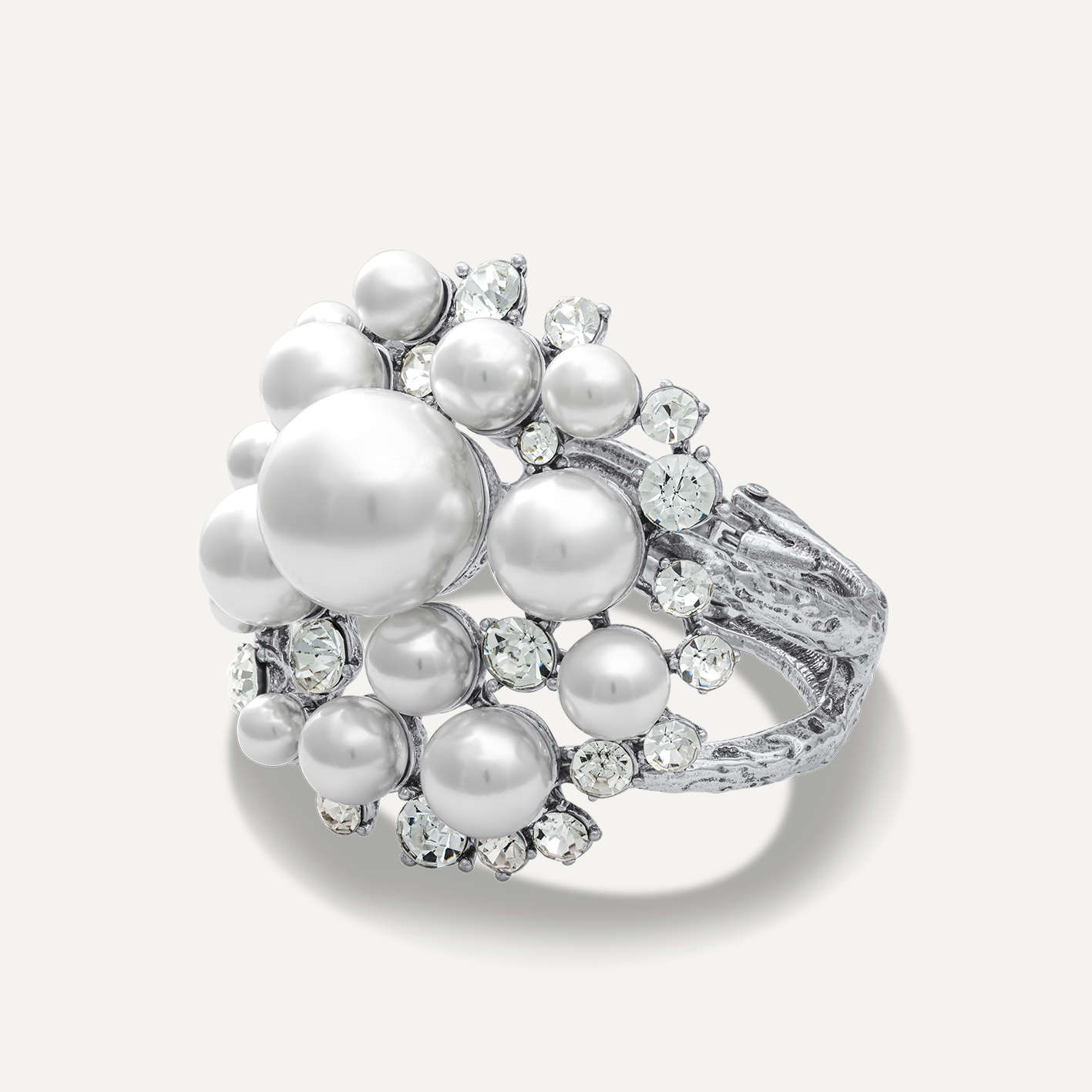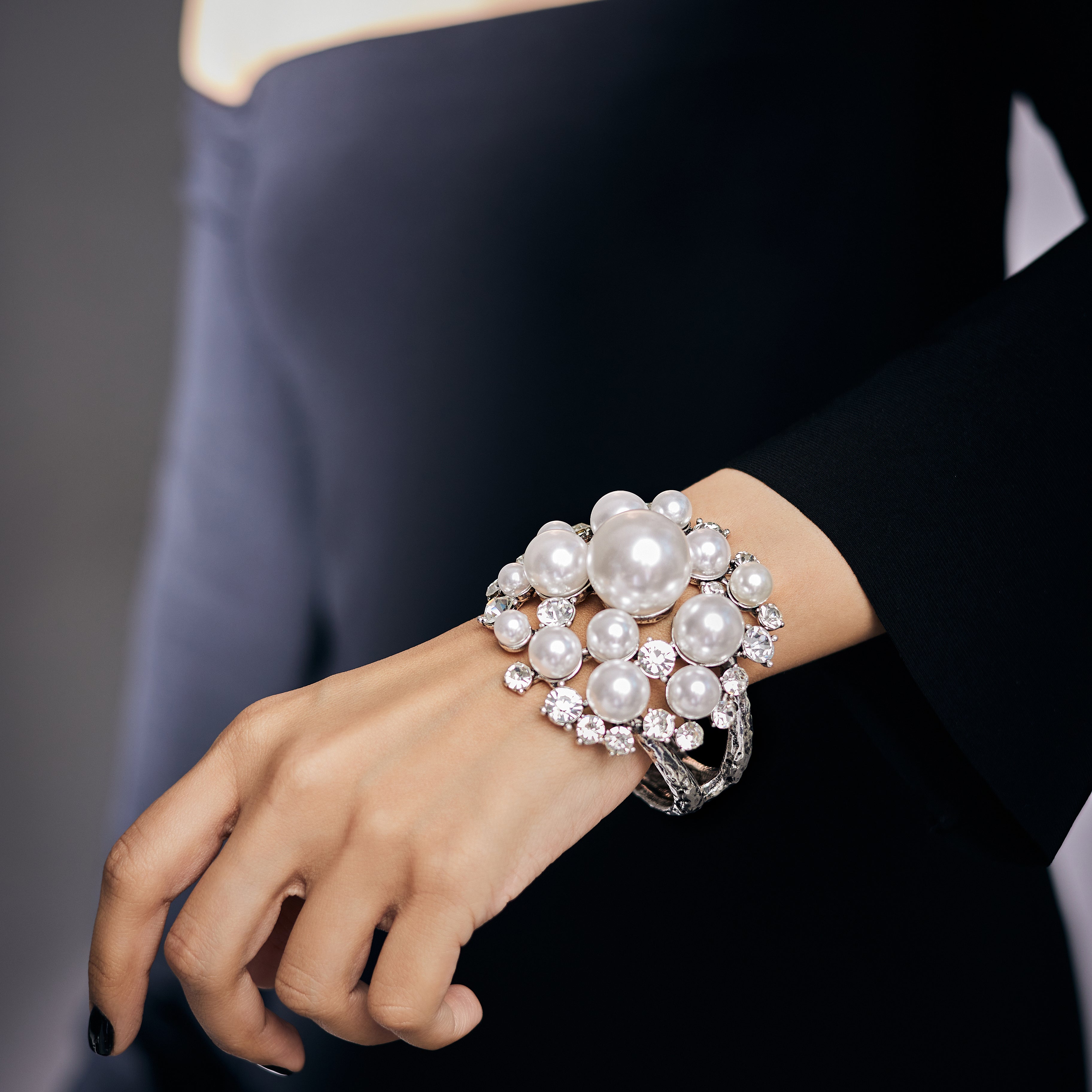 You cannot go wrong with pearls, can you? This bracelet is made from PVD Plated 316L Stainless Steel, and studded with diamond looking CZ stones.
