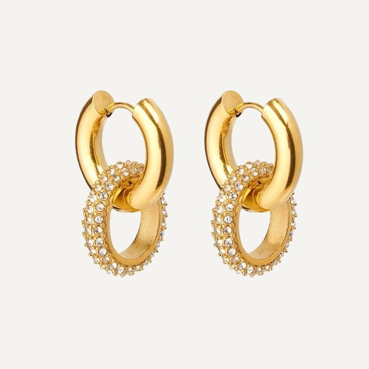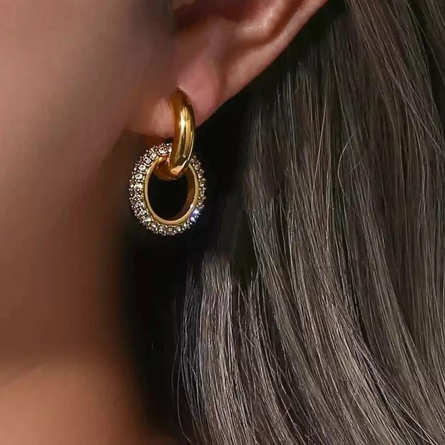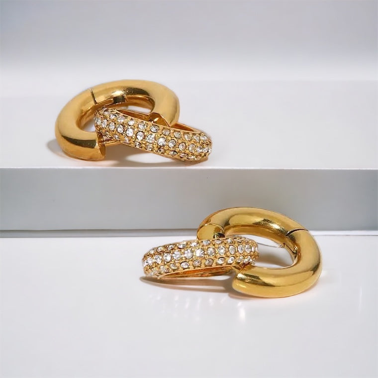 These 18k Gold Plated earrings with feature a removable link encrusted with beautiful rhinestones for maximum styling options. Wear as a huggie with the link removed, or make a statement with the full version, these earrings will draw attention to all the right places.