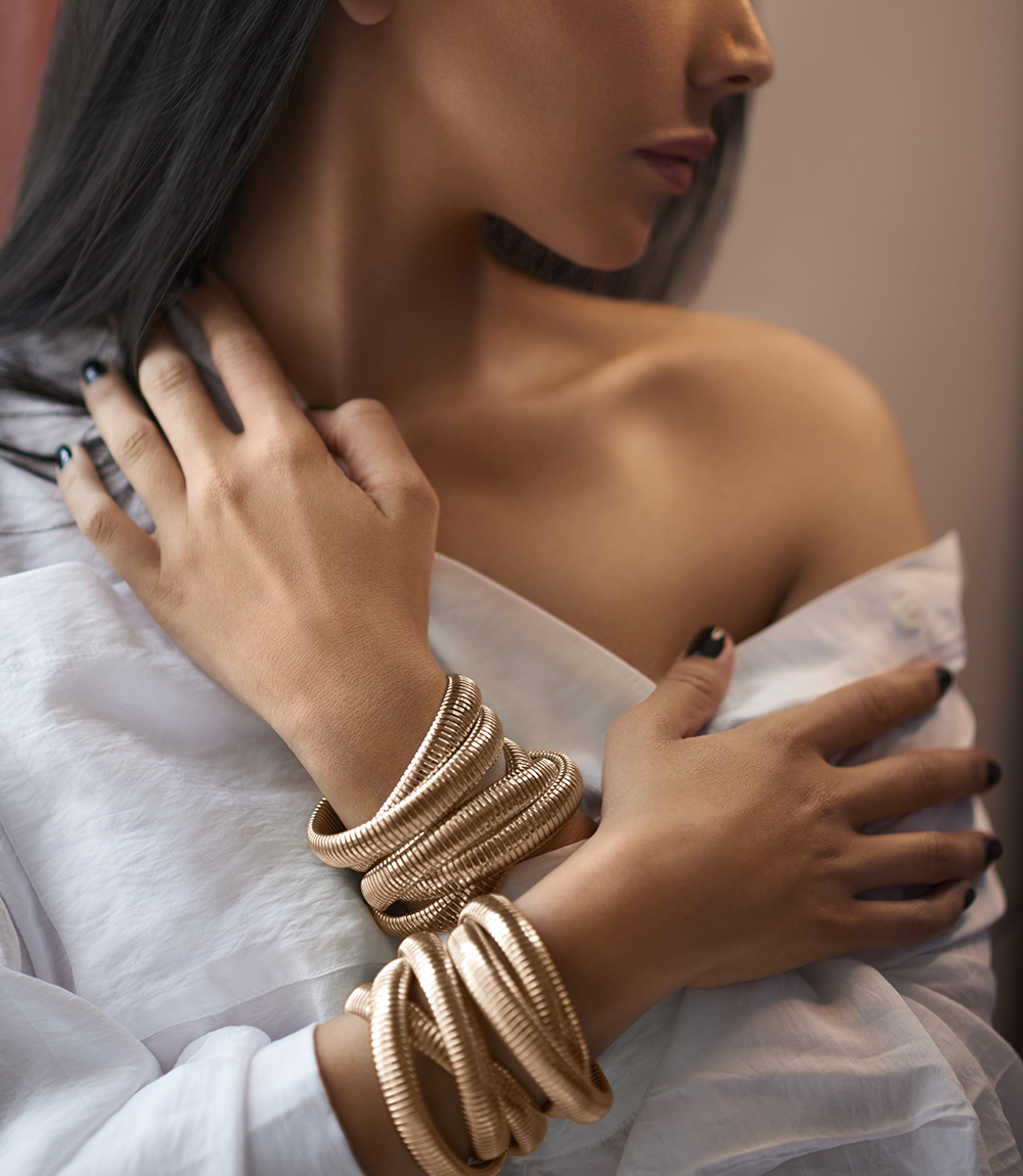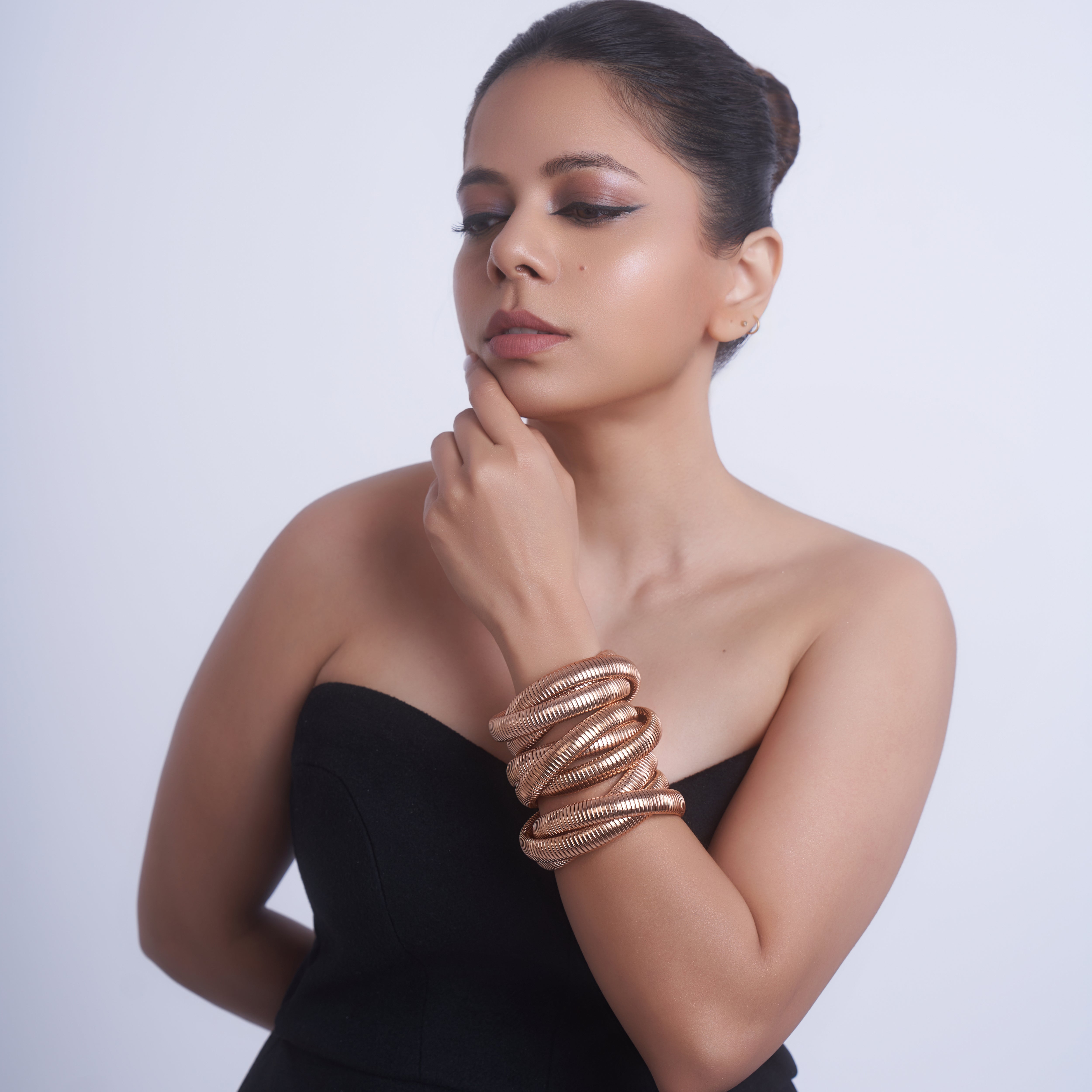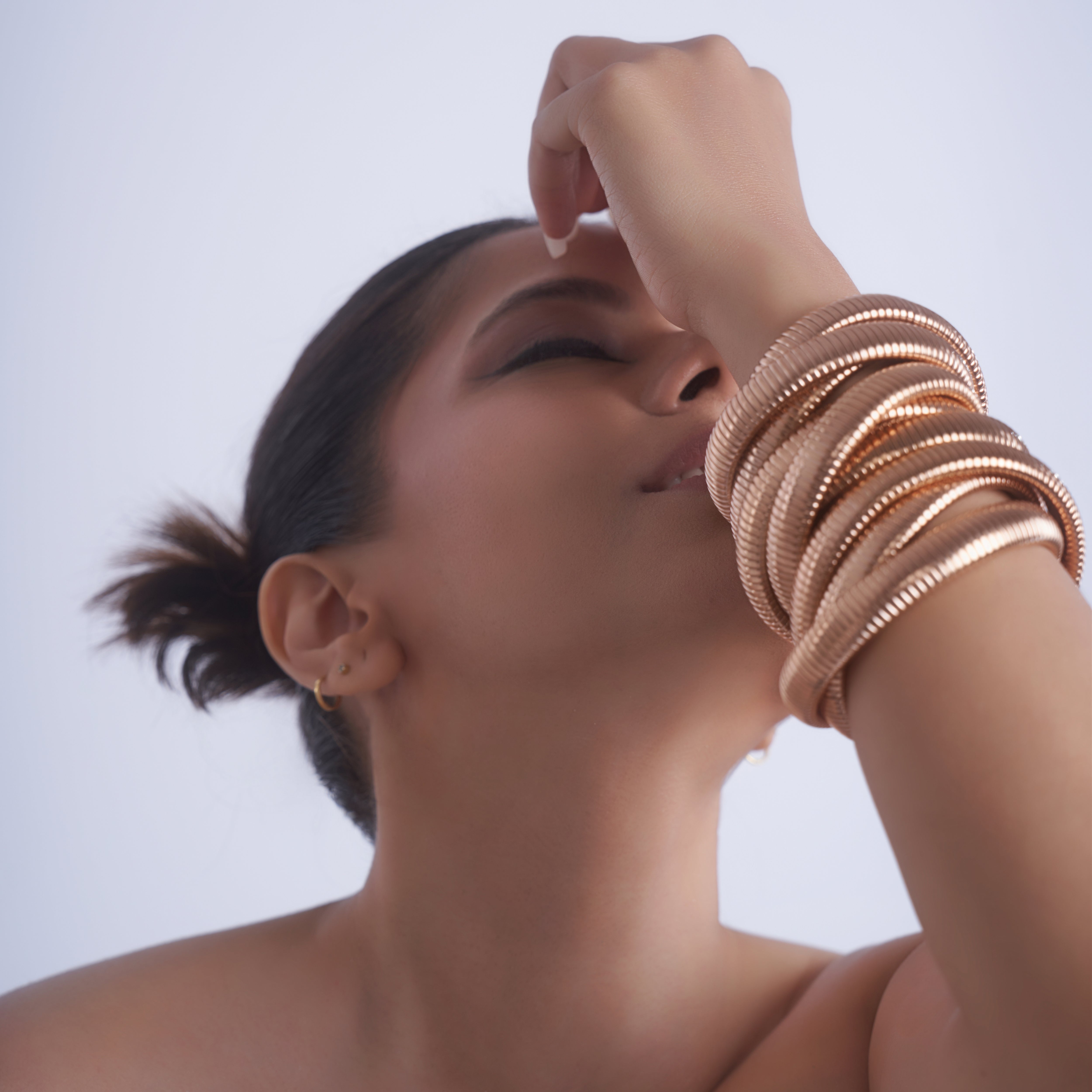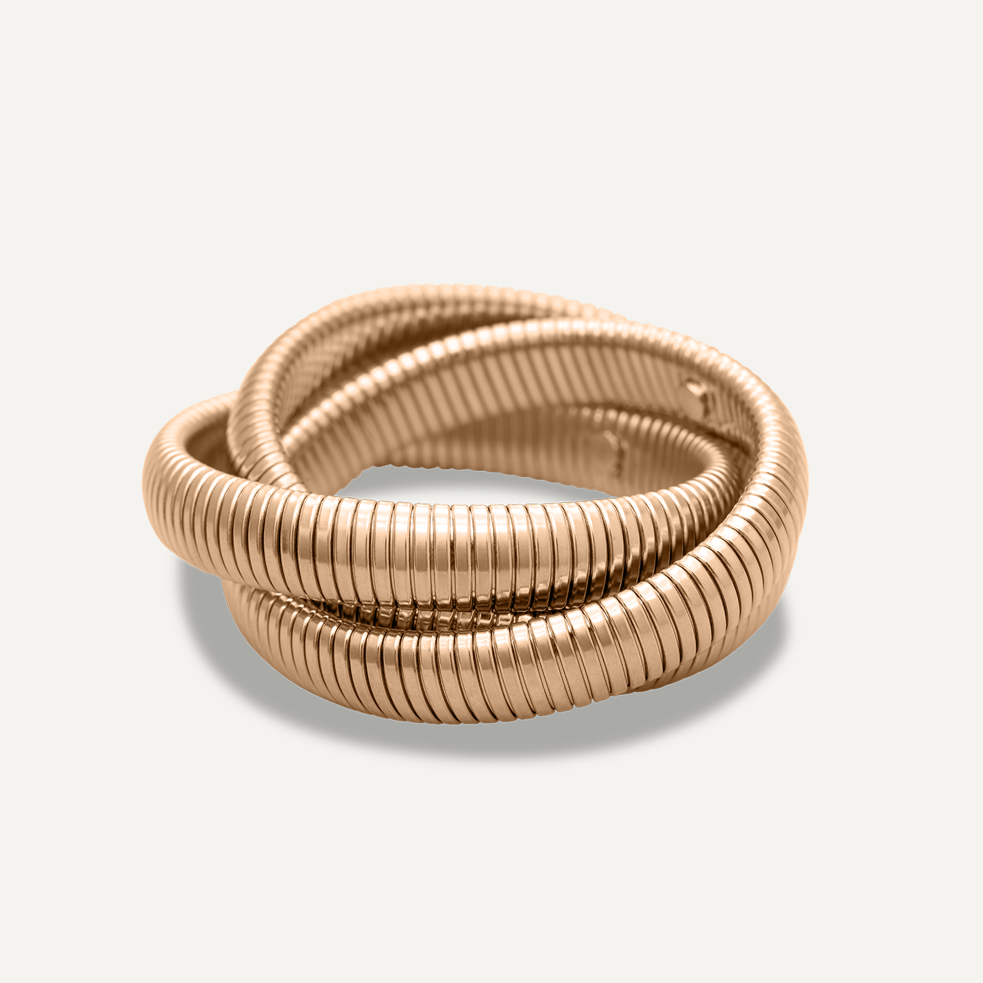 Bold and beautiful, this 18K Rose Gold Plated stretchable Triple Band-Bracelet can be worn on its own or stacked together to make a statement.