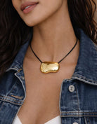 The Sculpted Pebble Necklace brings a modern, understated elegance to your everyday style. Defined by its smooth, organic silhouette, the pendant reflects light with a soft molten shine, a minimal yet impactful piece designed to elevate any look.