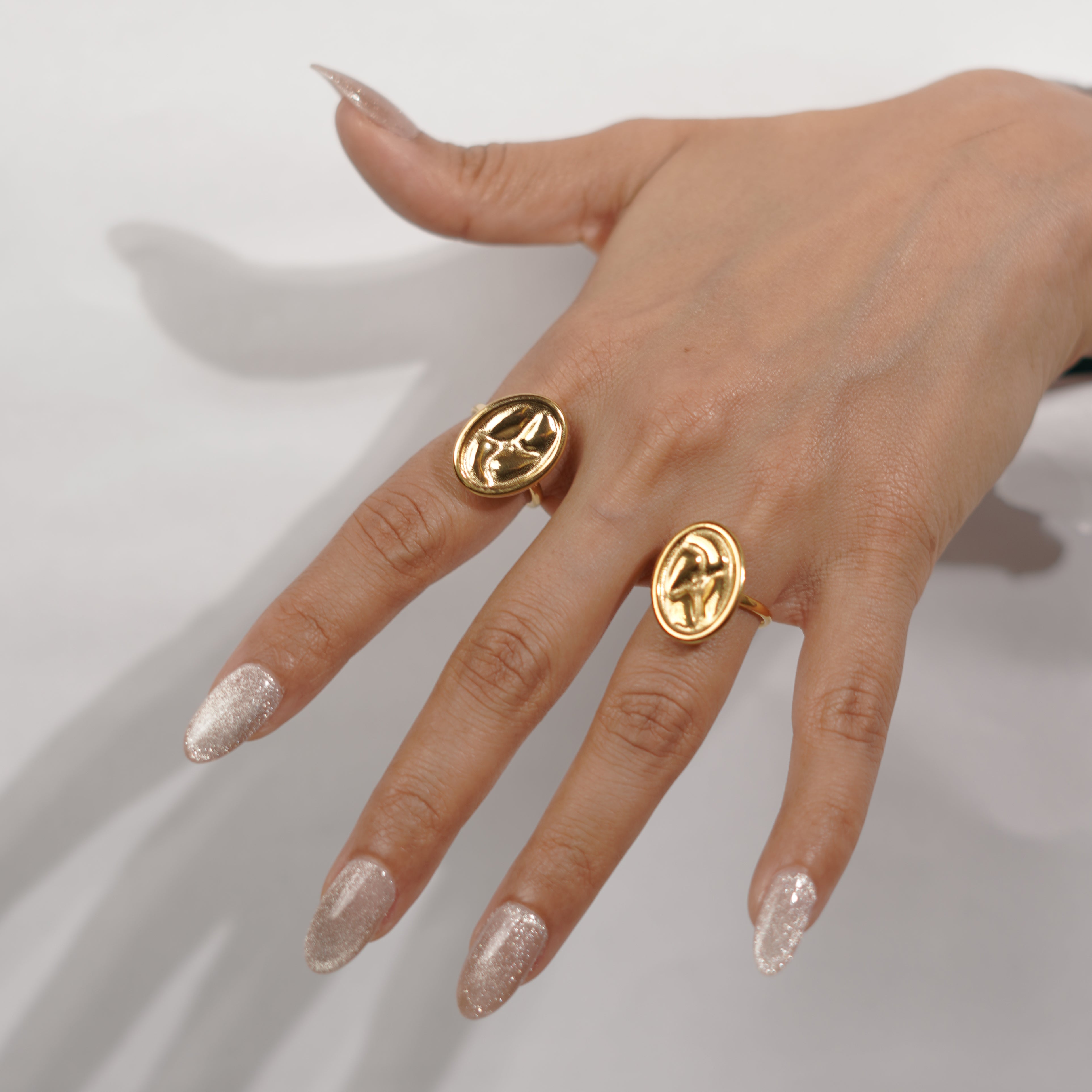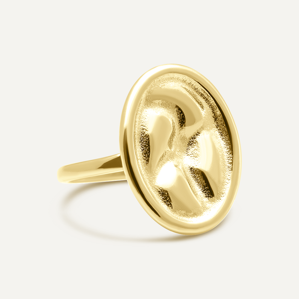 Named after the Greek Goddess of the Moon, this oval shaped signet ring features a beautiful design with ribbon-like structures, making this a an effortlessly stylish accessory.