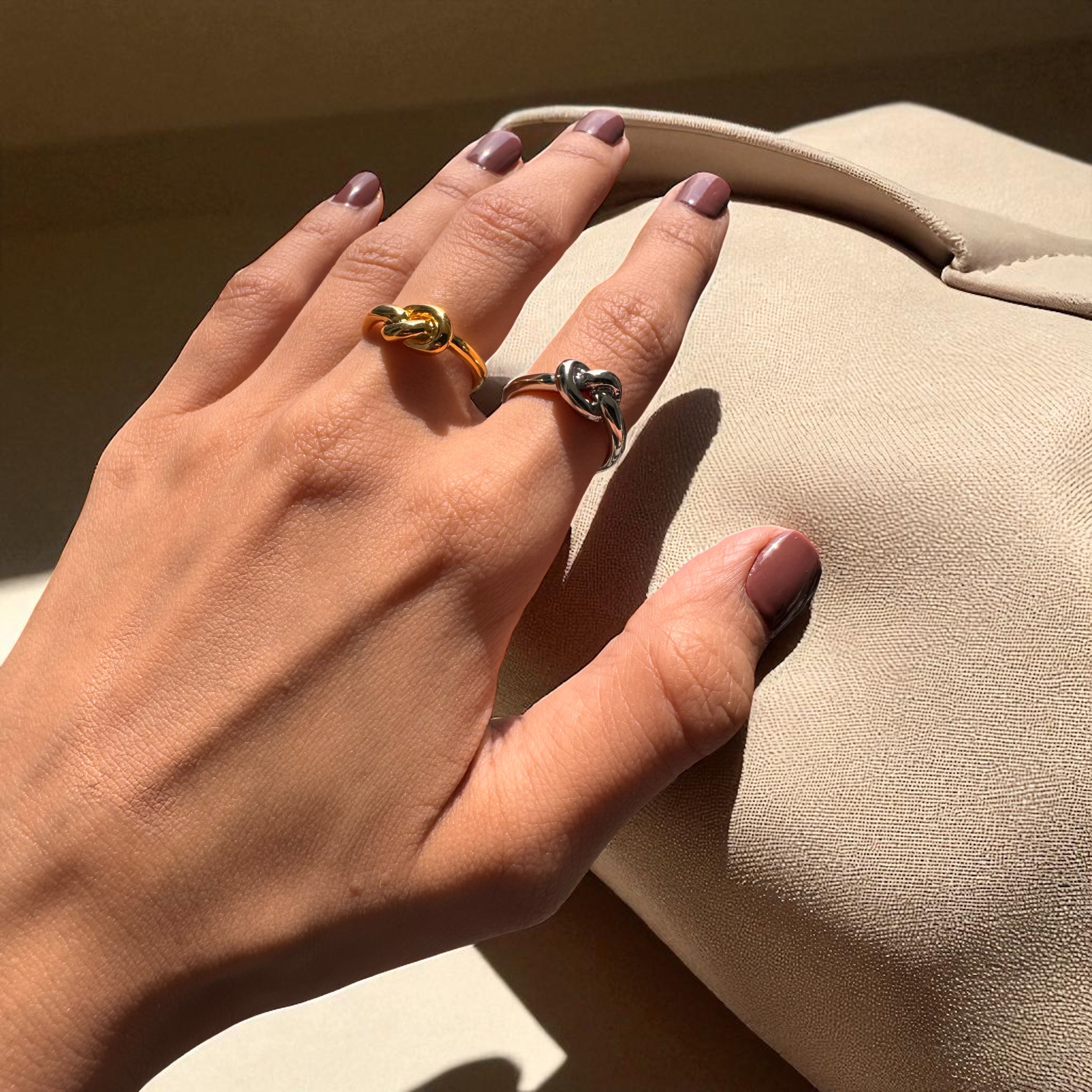 Crafted from medical-grade stainless steel with a thick layer of Silver PVD plating, each knot ring may feature subtle textural marks or tiny speckles - a natural result of the metal’s forming process and its handcrafted design, making every piece uniquely yours.