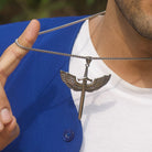 Crafted for the modern warrior, this silver colour necklace commands attention with its bold and intricate design. Embodying strength and courage, the pendant takes the form of a mighty sword, symbolizing resilience and determination. Wear it proudly as a statement piece, showcasing your unwavering spirit and unwavering commitment to your journey.