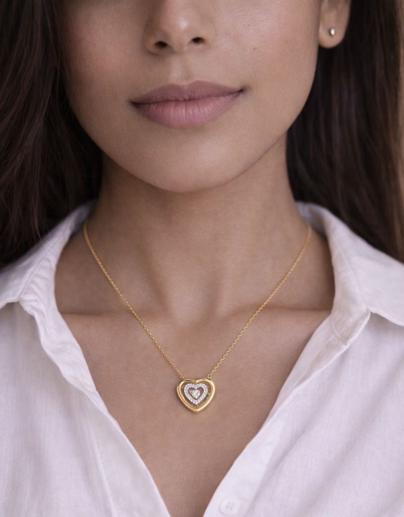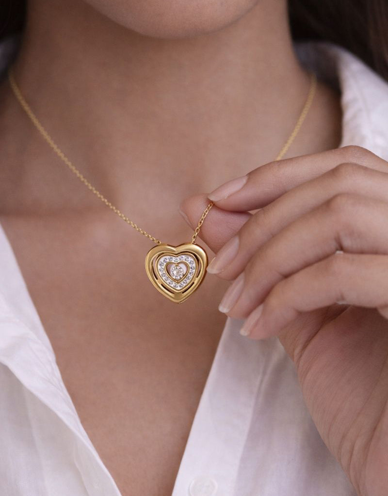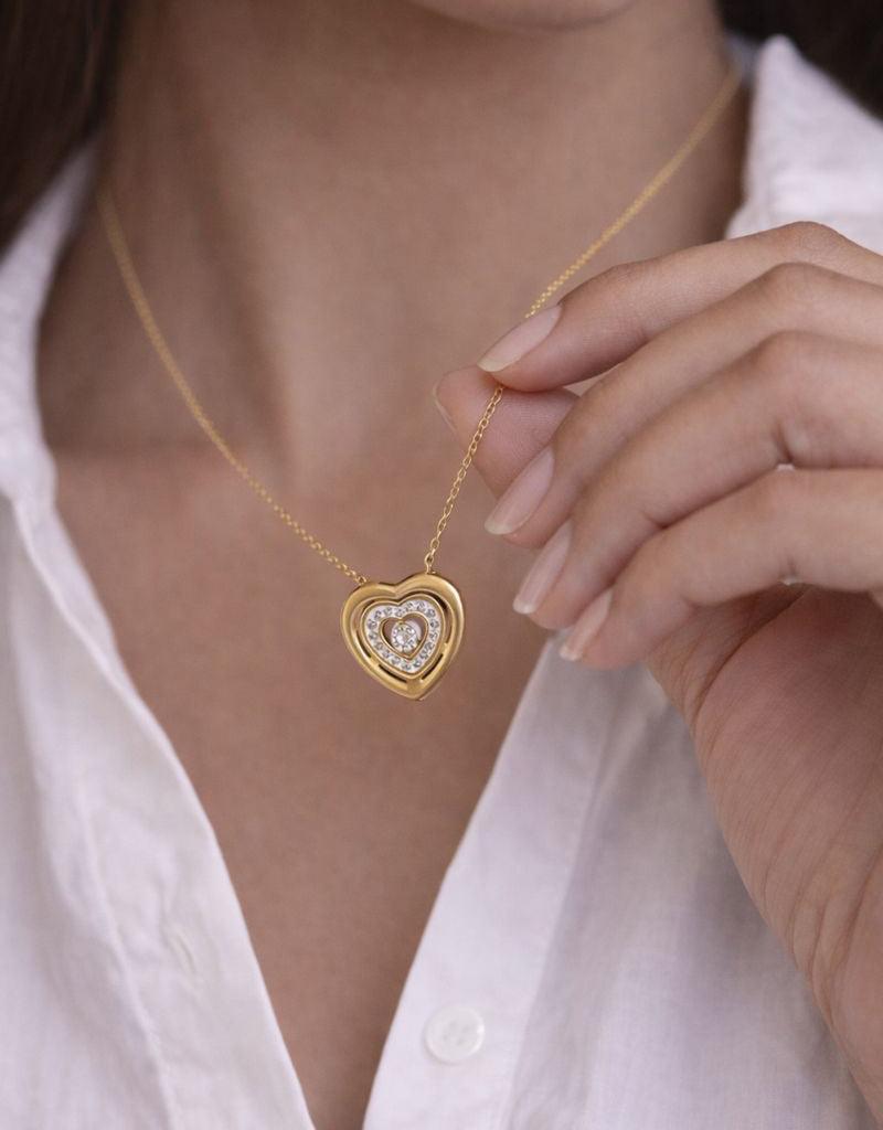 Soft, romantic, and just the right amount of sparkle - the Twilight Heart Necklace is designed to make every moment feel special. It features a unique double-layer look, where a heart-shaped pendant gently pops out from the chain, creating a beautiful sense of depth. The heart is set with high-grade AAAA zircon stones that shimmer like real diamonds, giving it a timeless and elegant glow.
