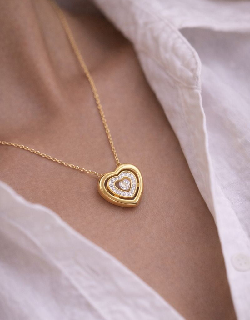 • Design: Double-layer heart pendant with a 5cm extender chain.