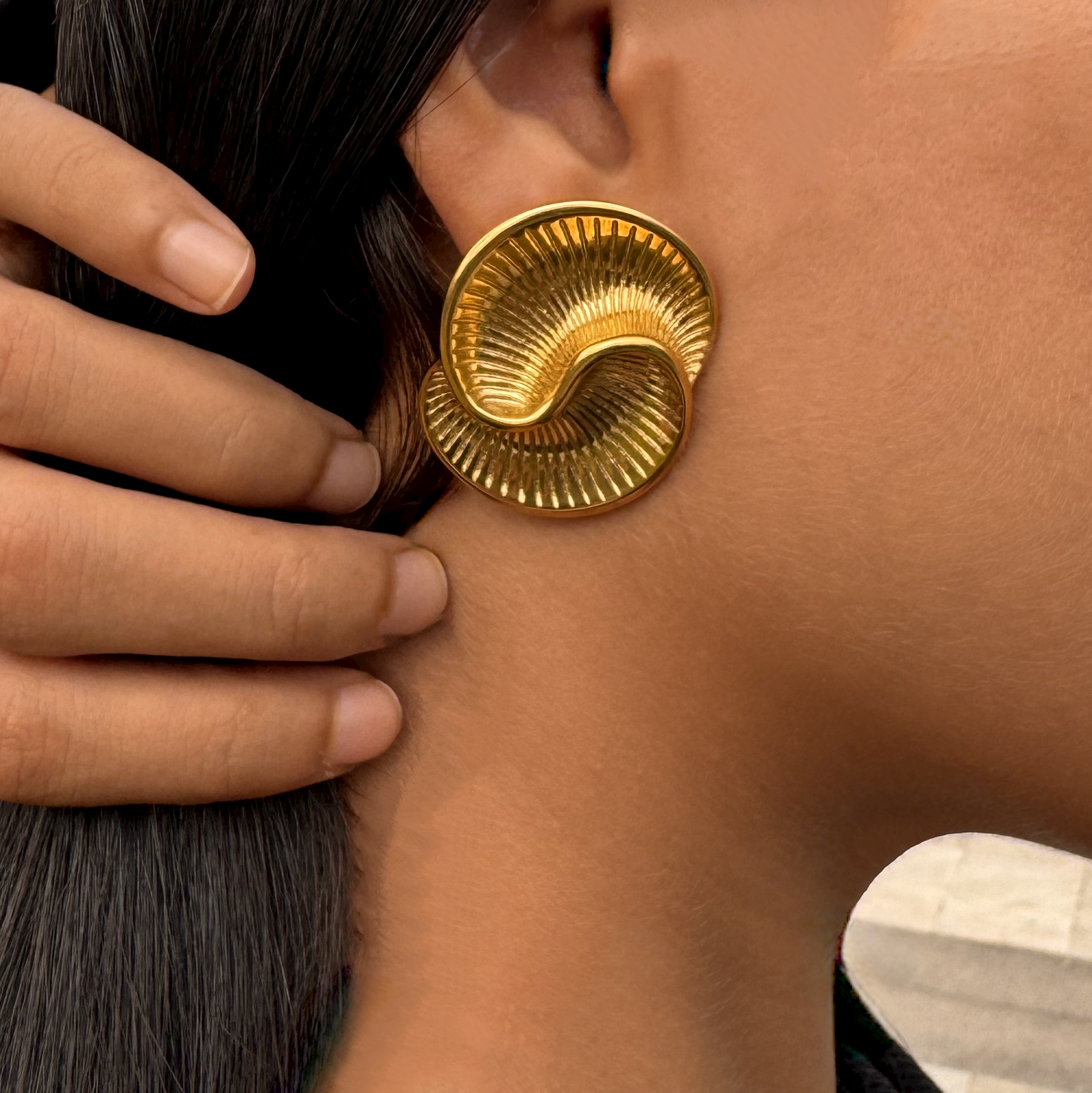 Indulge in the timeless allure of our Vintage Gold Shell Earrings. Crafted with meticulous attention to detail, each delicate shell-shaped piece exudes a sense of refined elegance and sophistication. The warm, lustrous glow of the vintage gold finish adds a touch of opulence to any ensemble, making these earrings a luxurious statement accessory for both casual and formal occasions.