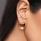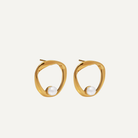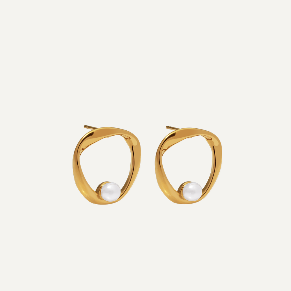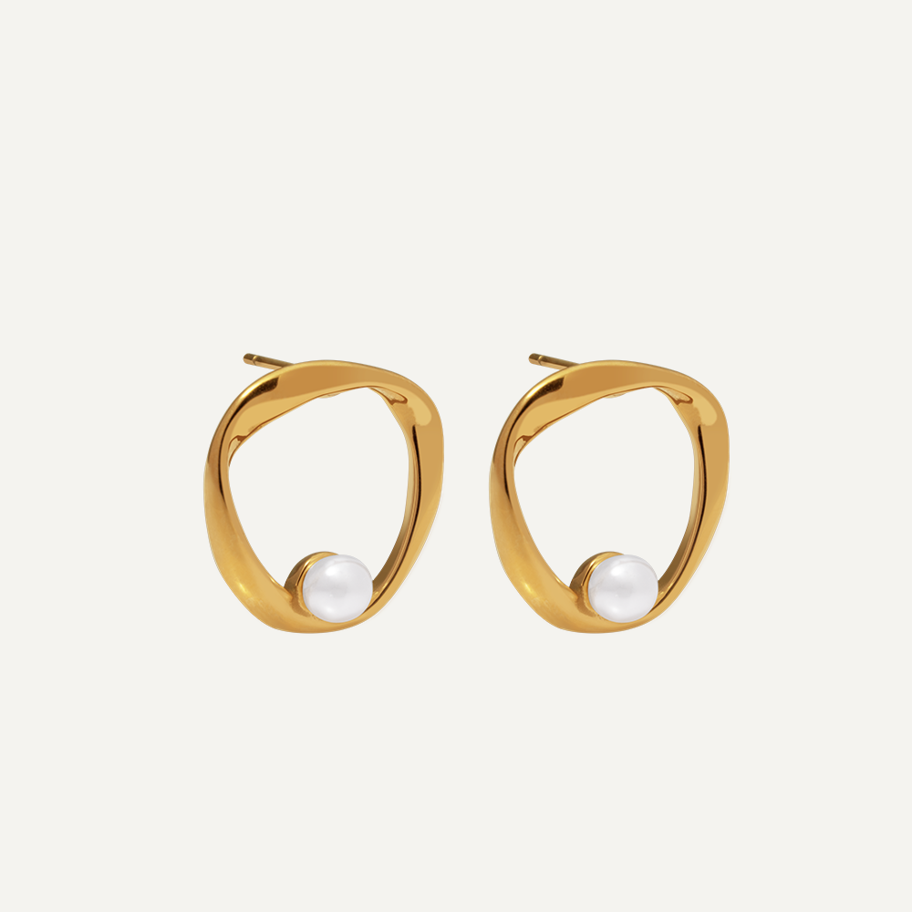 Make a softer statement with these pearl stud earrings that have a cool twist. Dipped in 18K Gold, these will give any look an elegant touch.